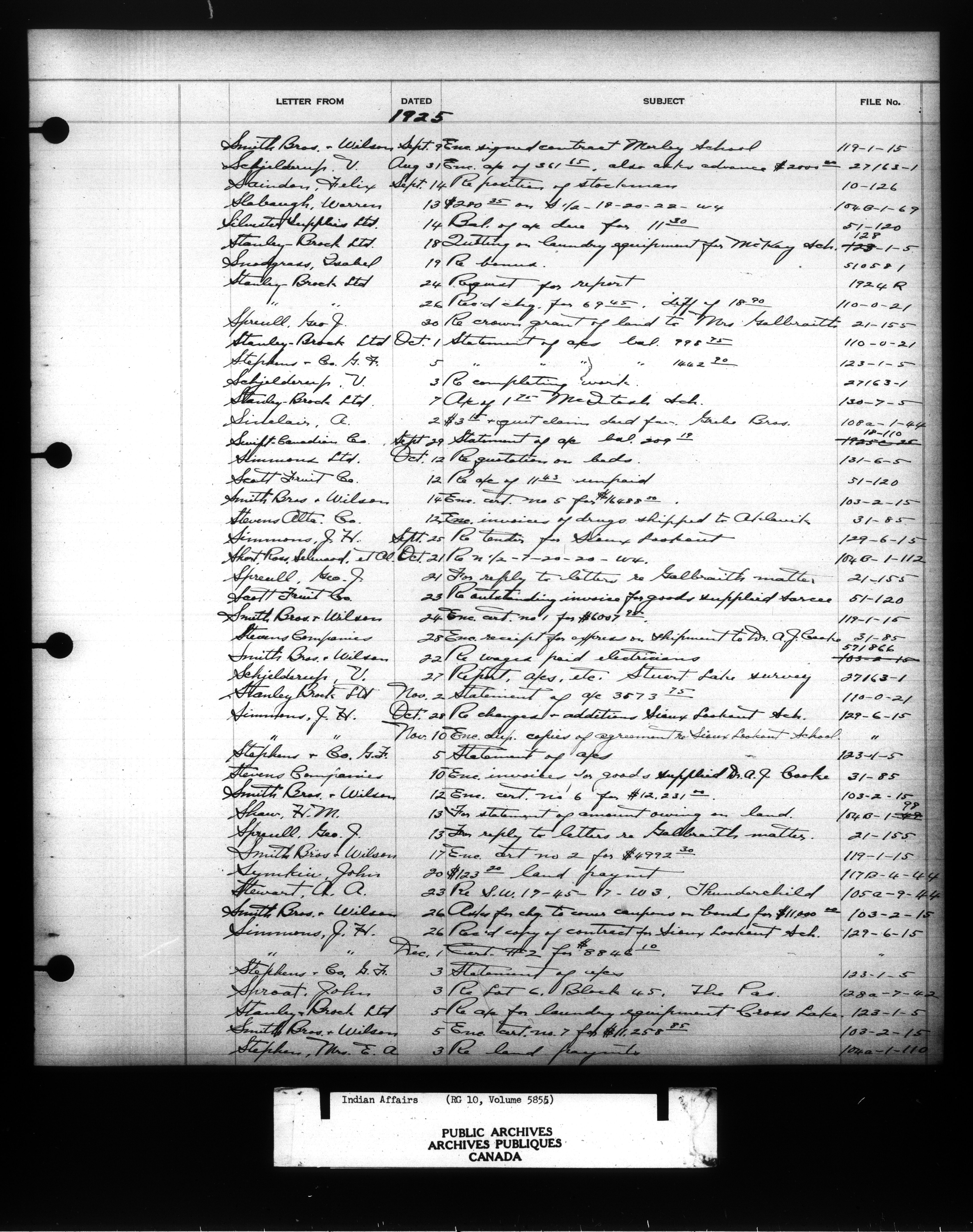 Department of Indian Affairs : Indexed Registers for Western Canada - 10943