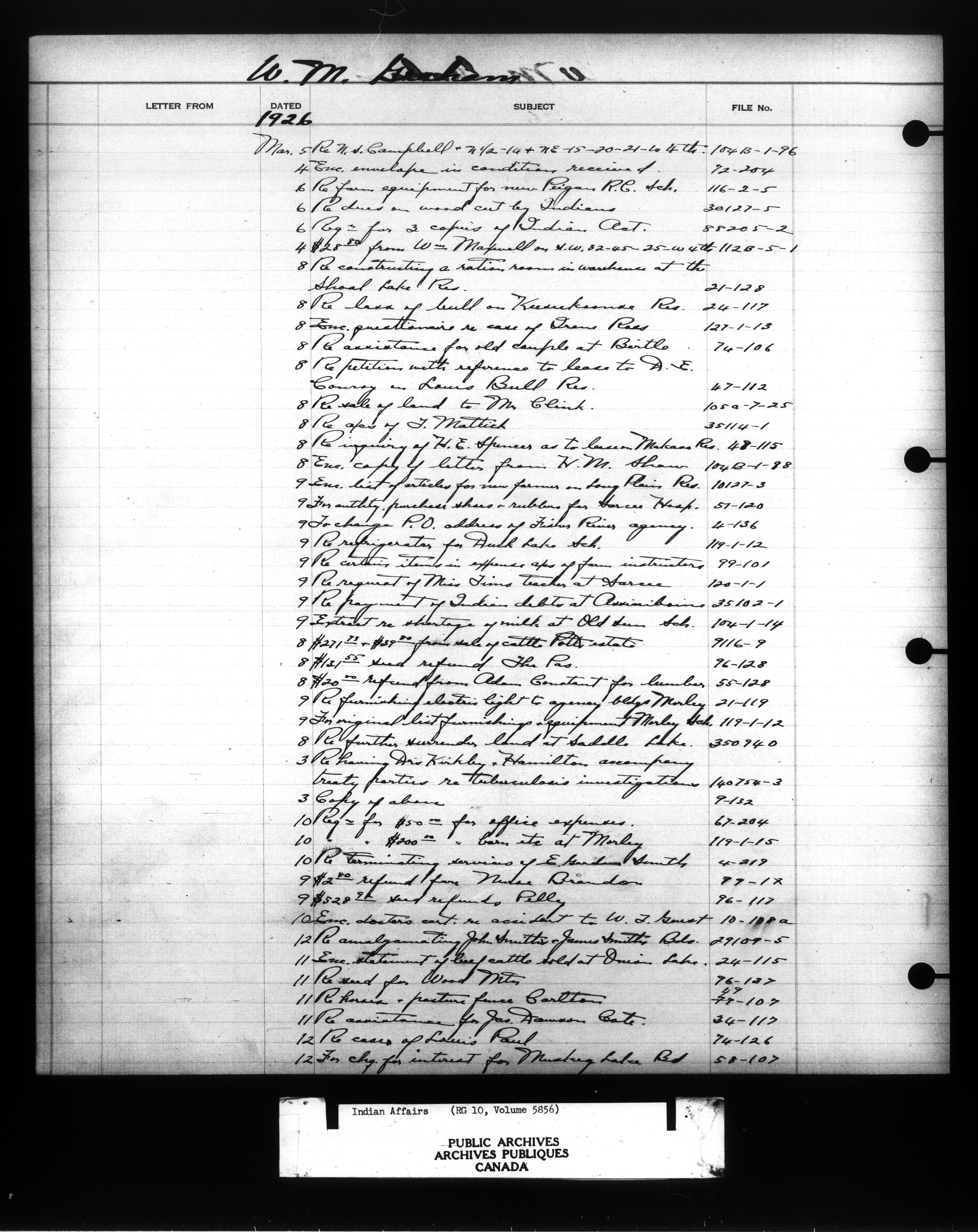 Department of Indian Affairs : Indexed Registers for Western Canada - 10943