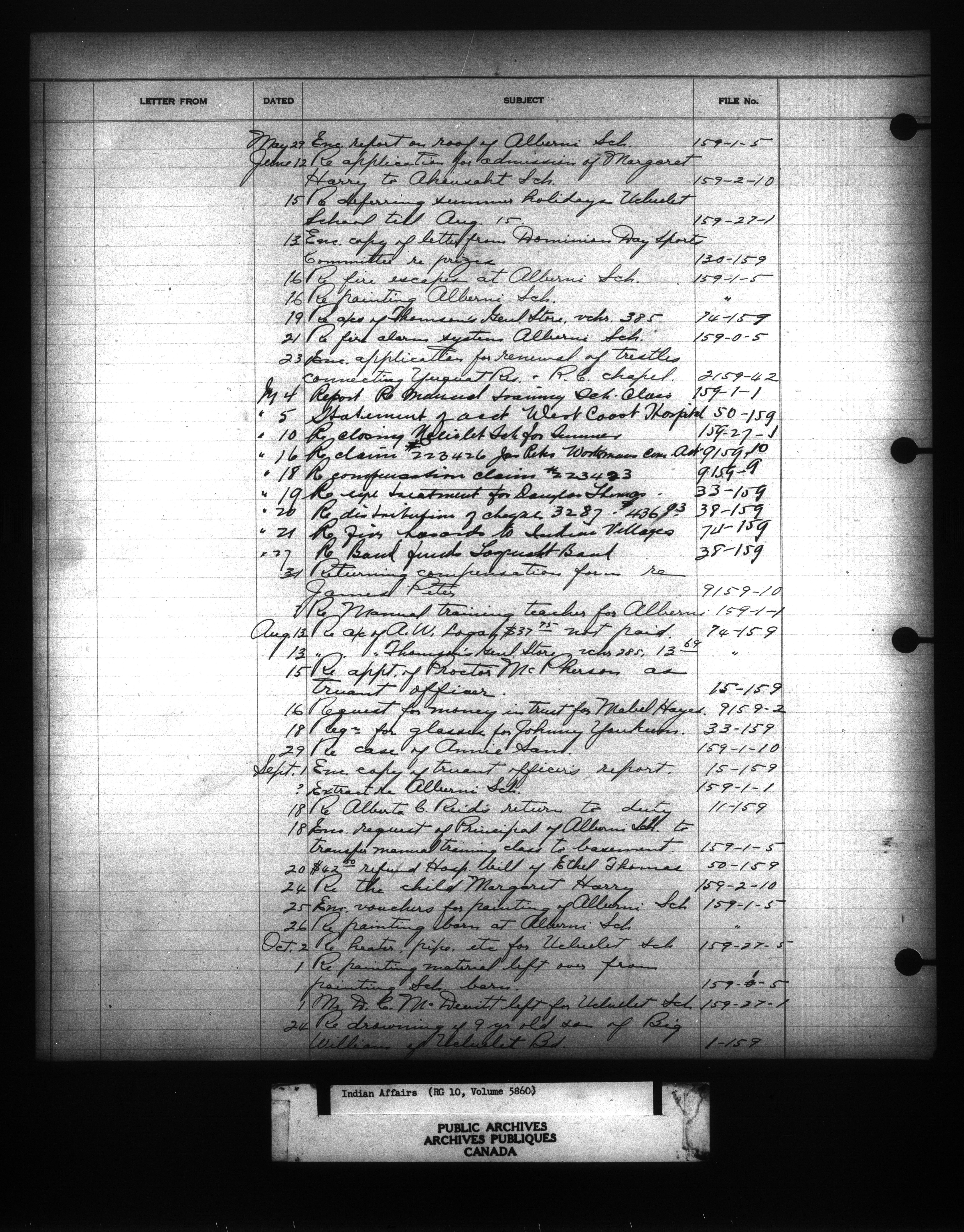 Department of Indian Affairs : Indexed Registers for Western Canada - 10945