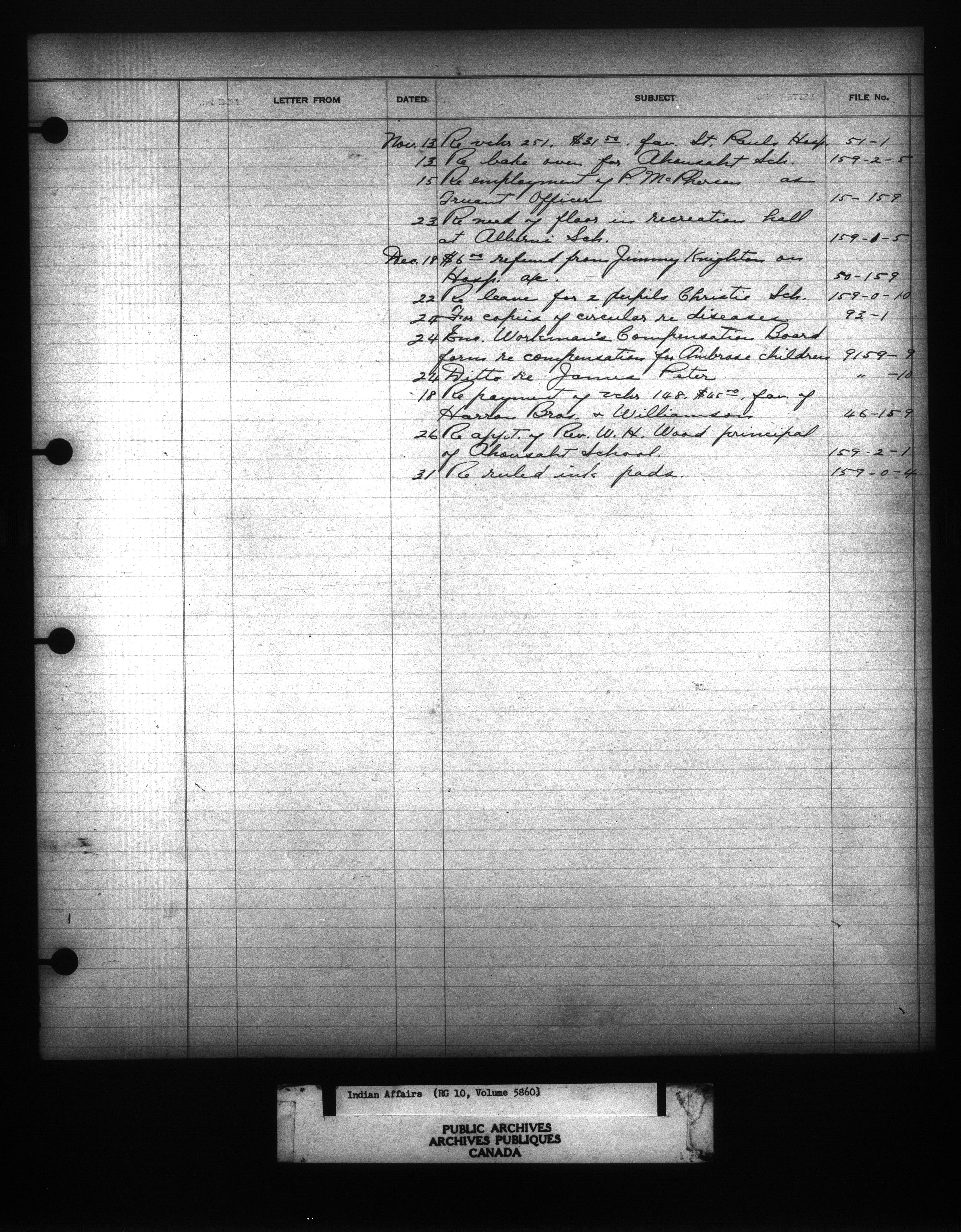 Department of Indian Affairs : Indexed Registers for Western Canada - 10945