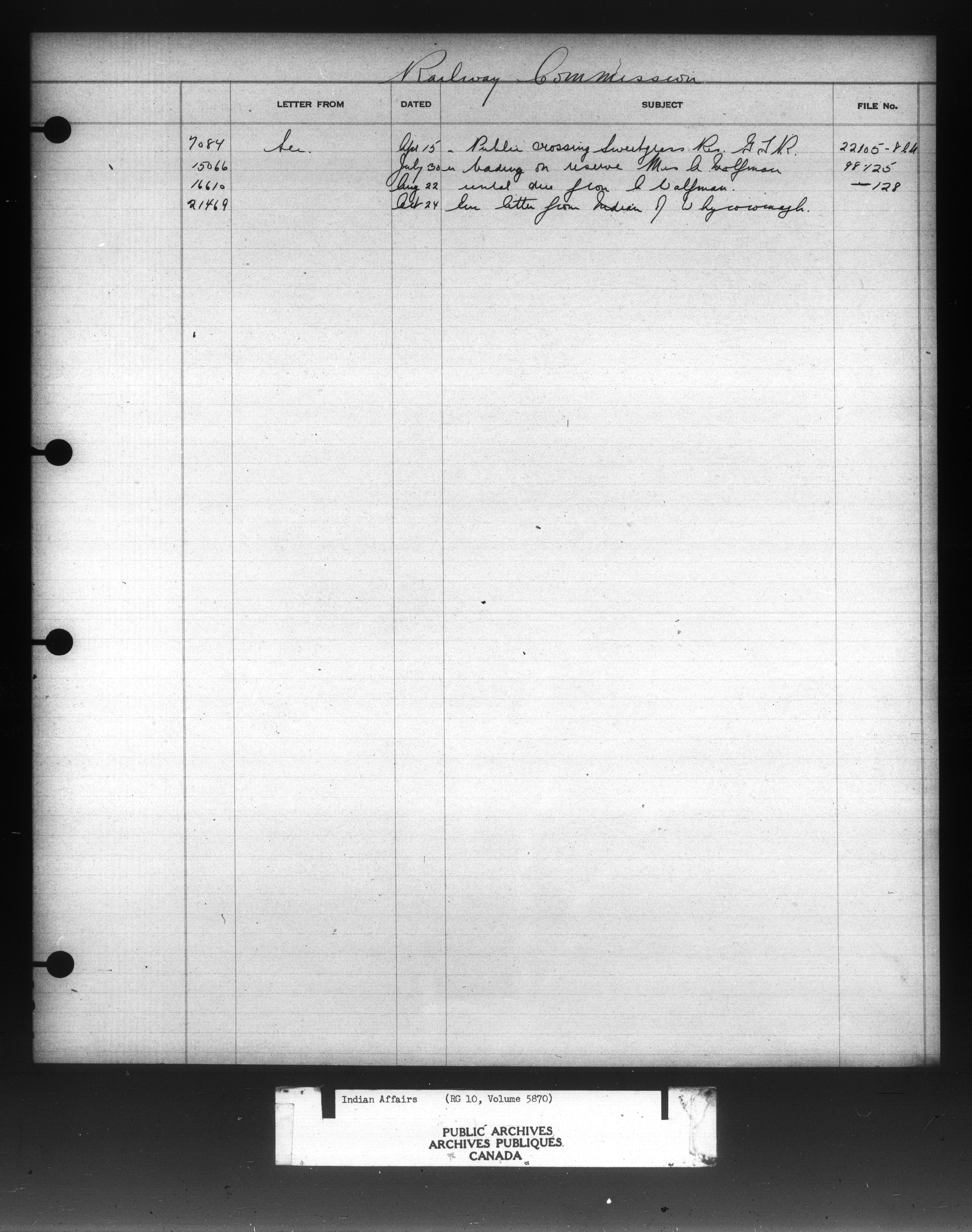 Department of Indian Affairs, Headquarters central registry system :registers, indices and indexed registers : C-10949
