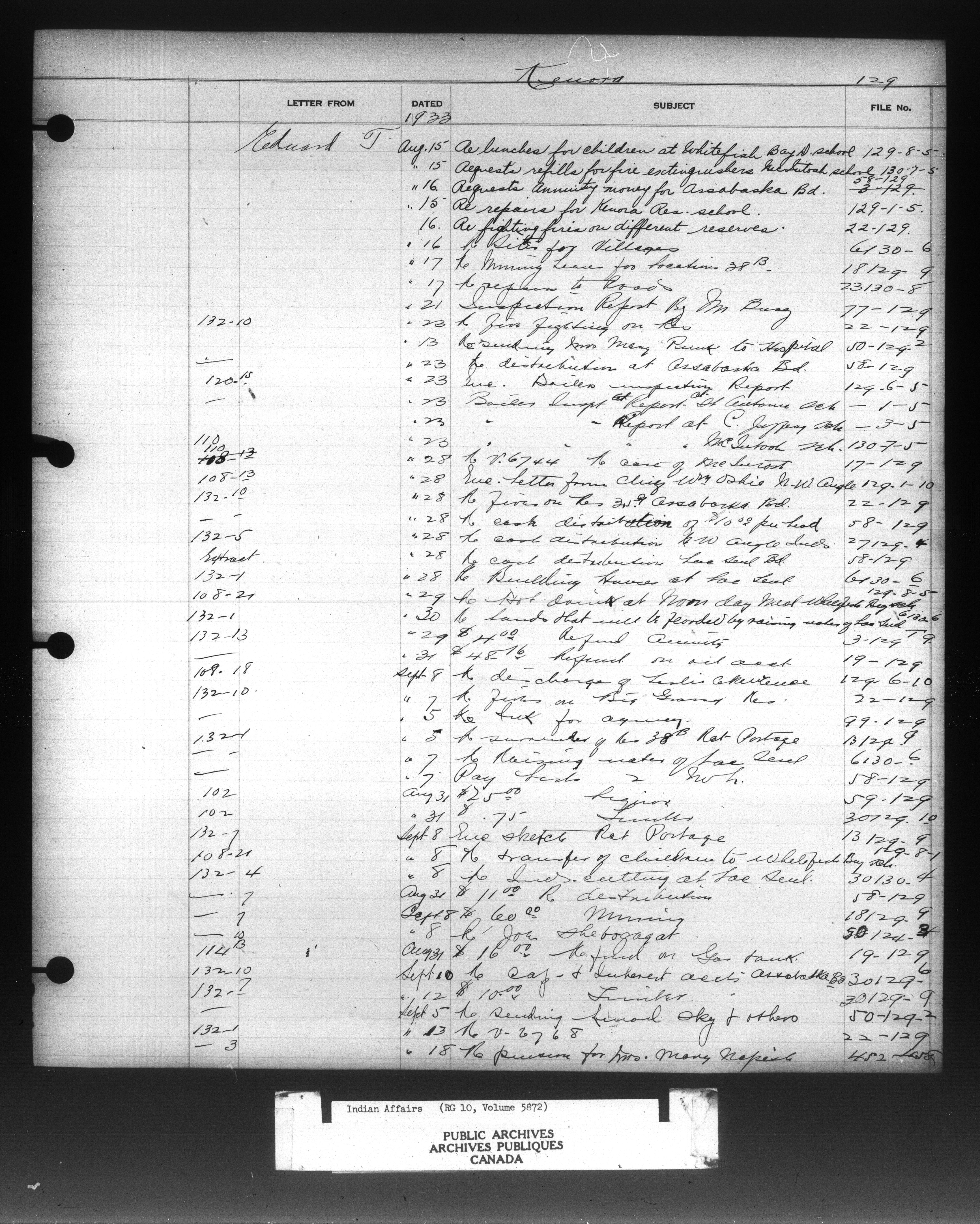 Department of Indian Affairs : Indexed Registers for Western Canada - 10949