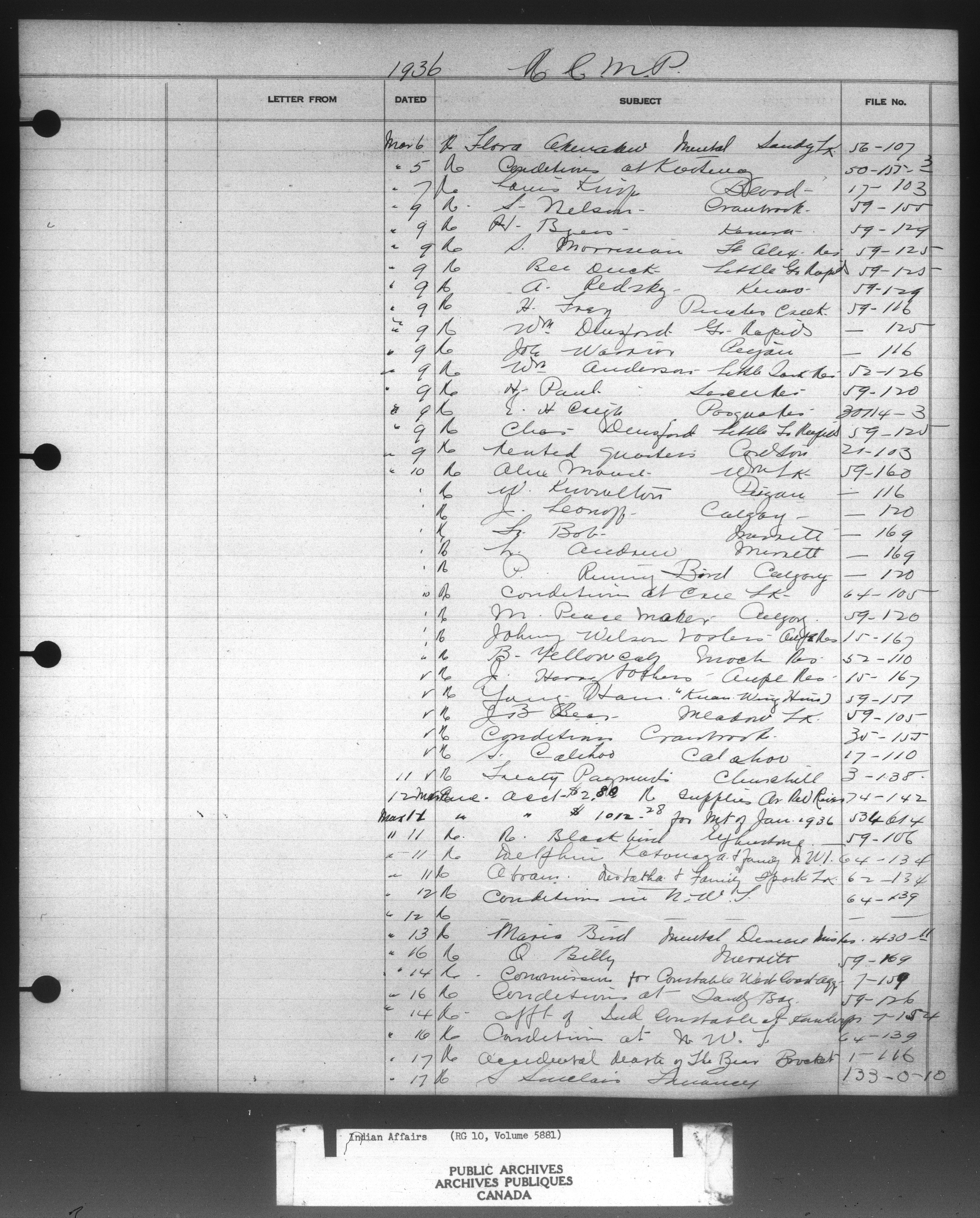 Department of Indian Affairs : Indexed Registers for Western Canada - 10951