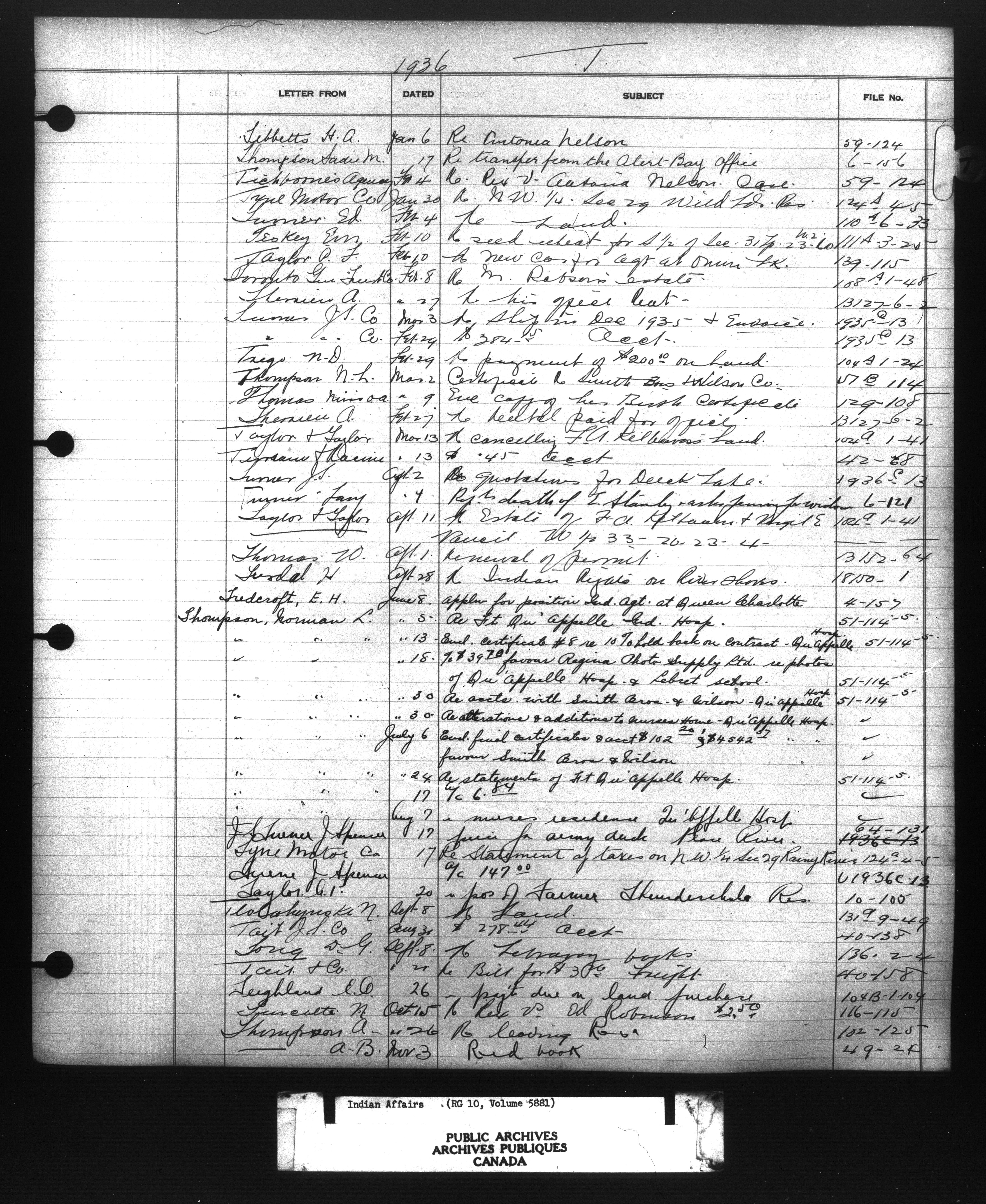 Department of Indian Affairs : Indexed Registers for Western Canada - 10952
