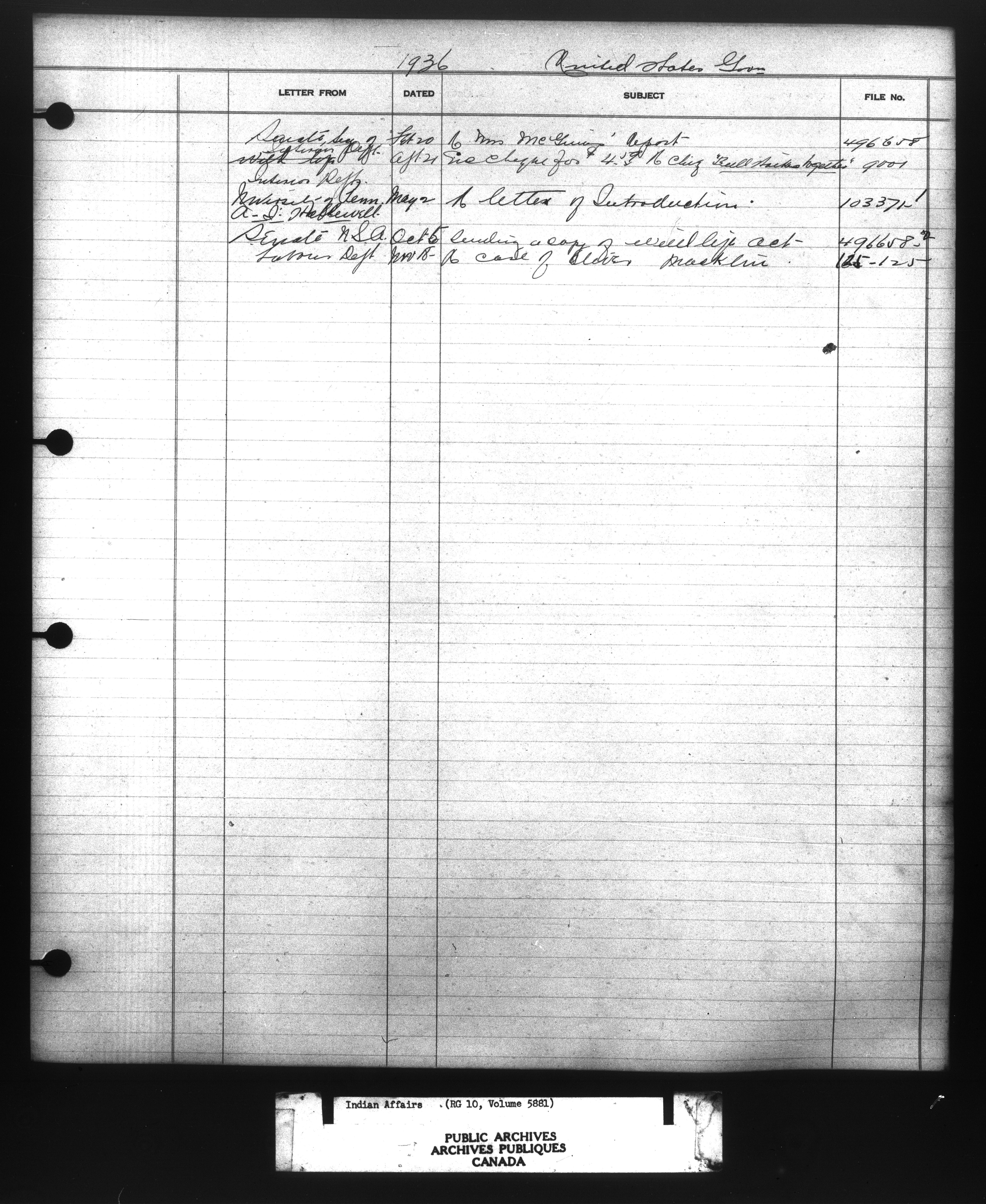 Department of Indian Affairs : Indexed Registers for Western Canada - 10952