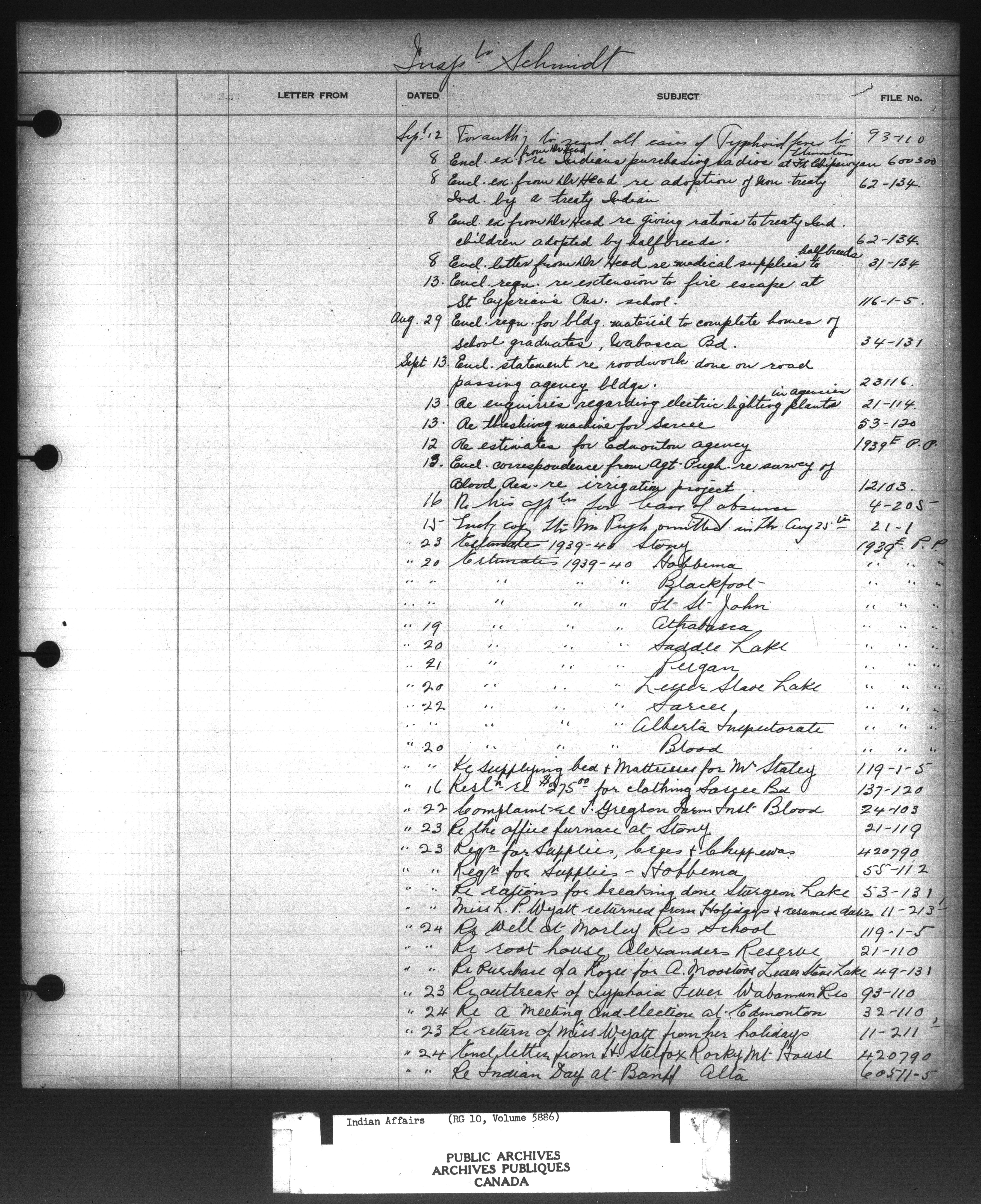 Department of Indian Affairs : Indexed Registers for Western Canada - 10953