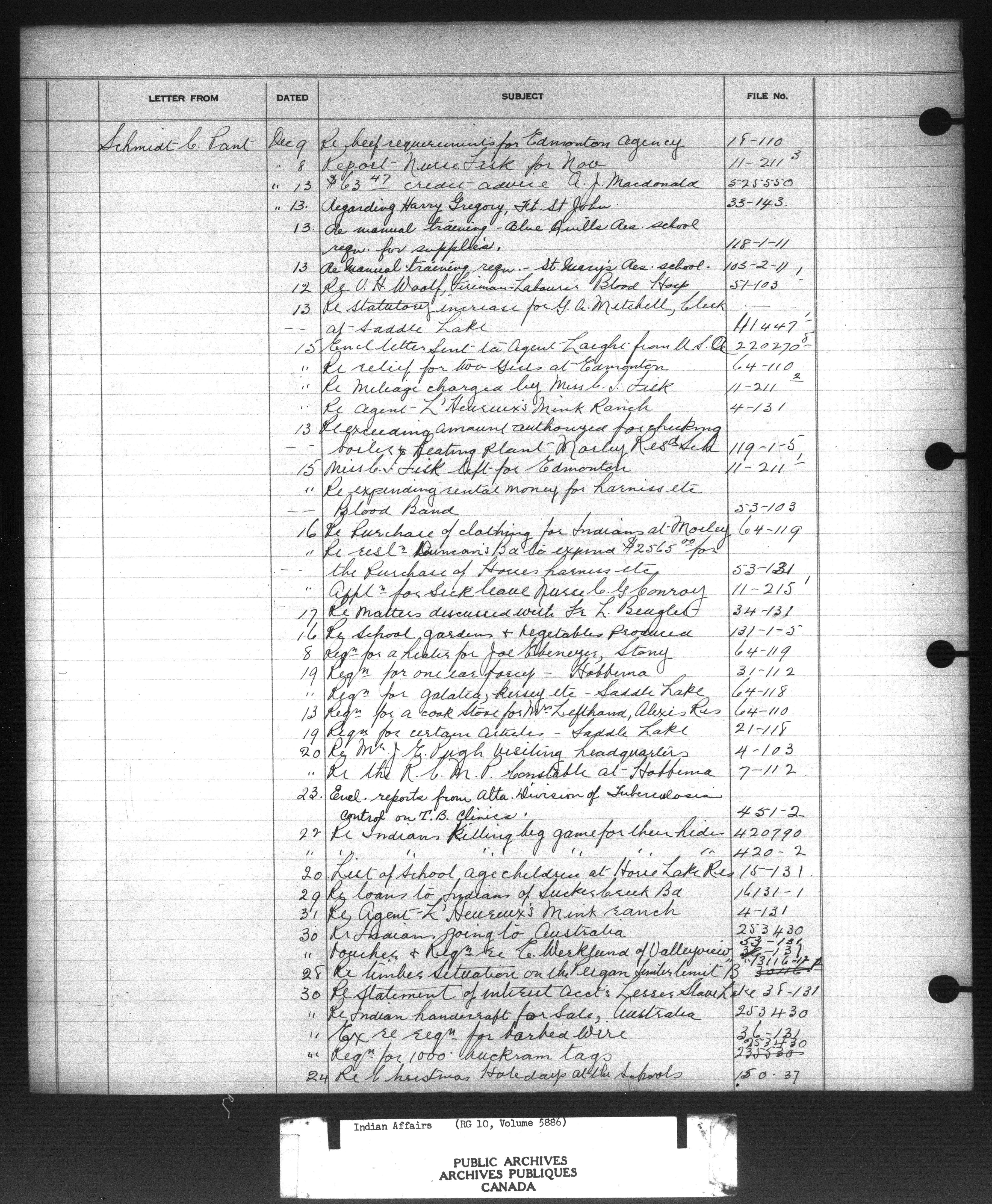 Department of Indian Affairs : Indexed Registers for Western Canada - 10953
