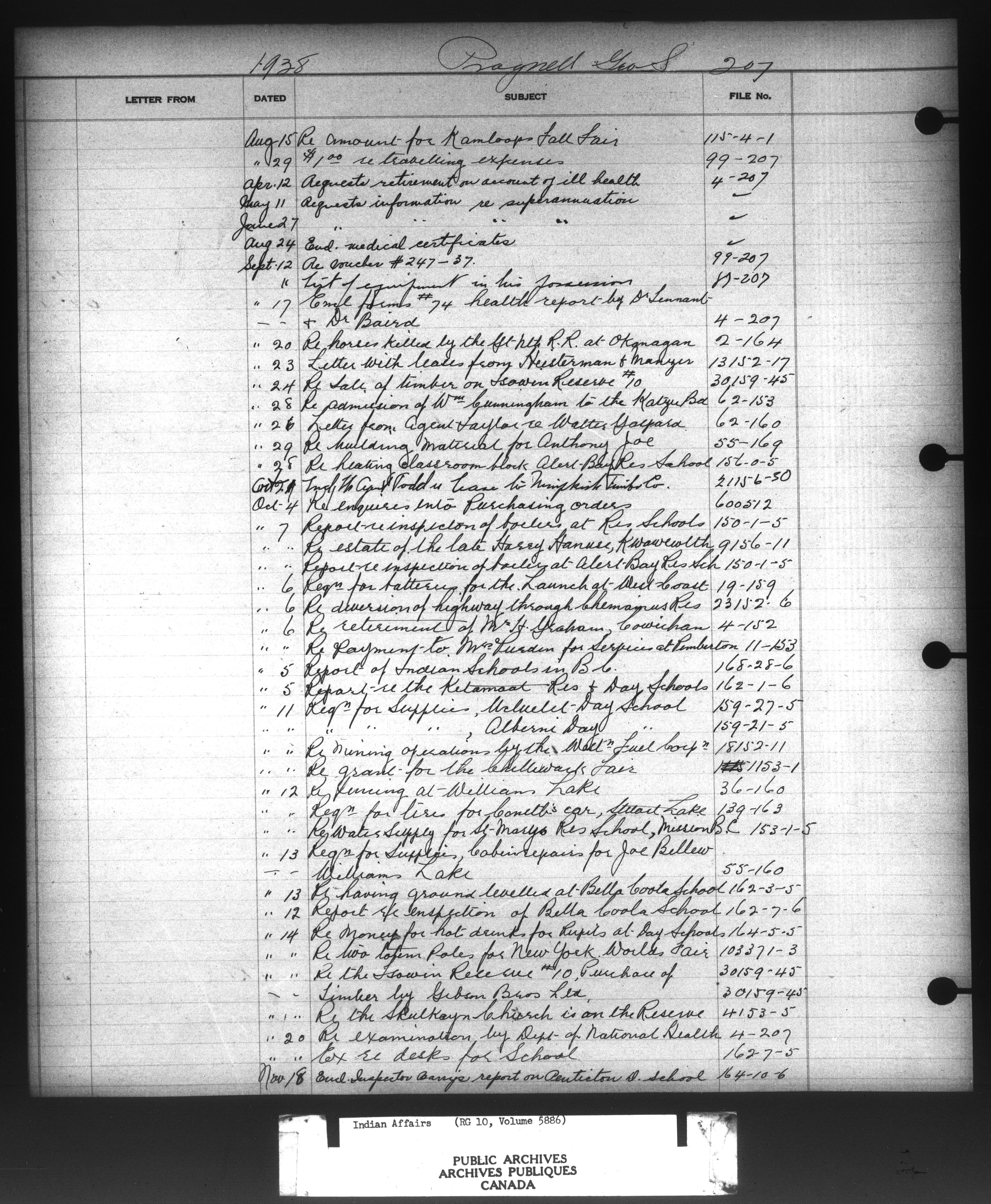 Department of Indian Affairs, Headquarters central registry system :registers, indices and indexed registers : C-10953