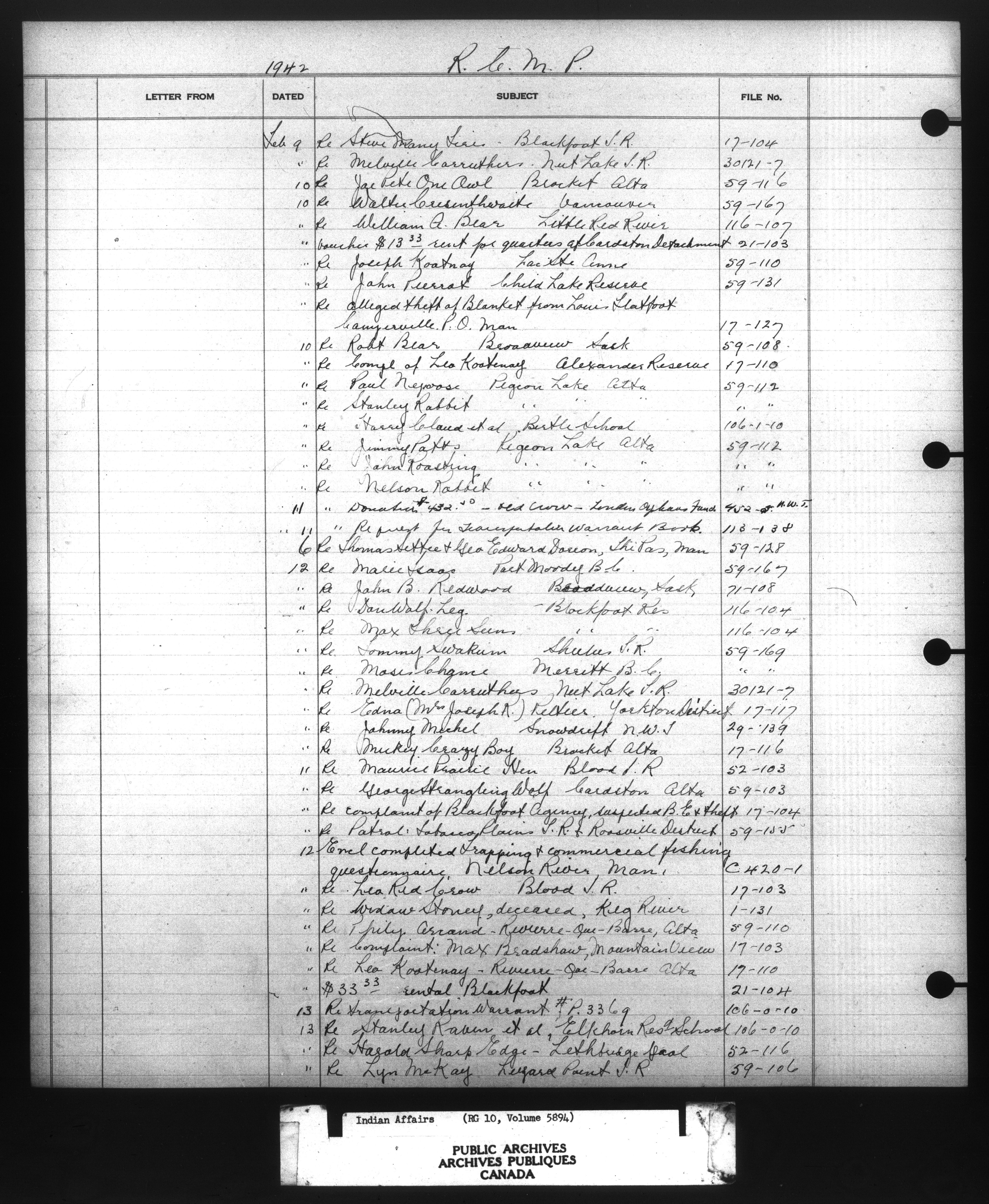 Department of Indian Affairs : Indexed Registers for Western Canada - 10956