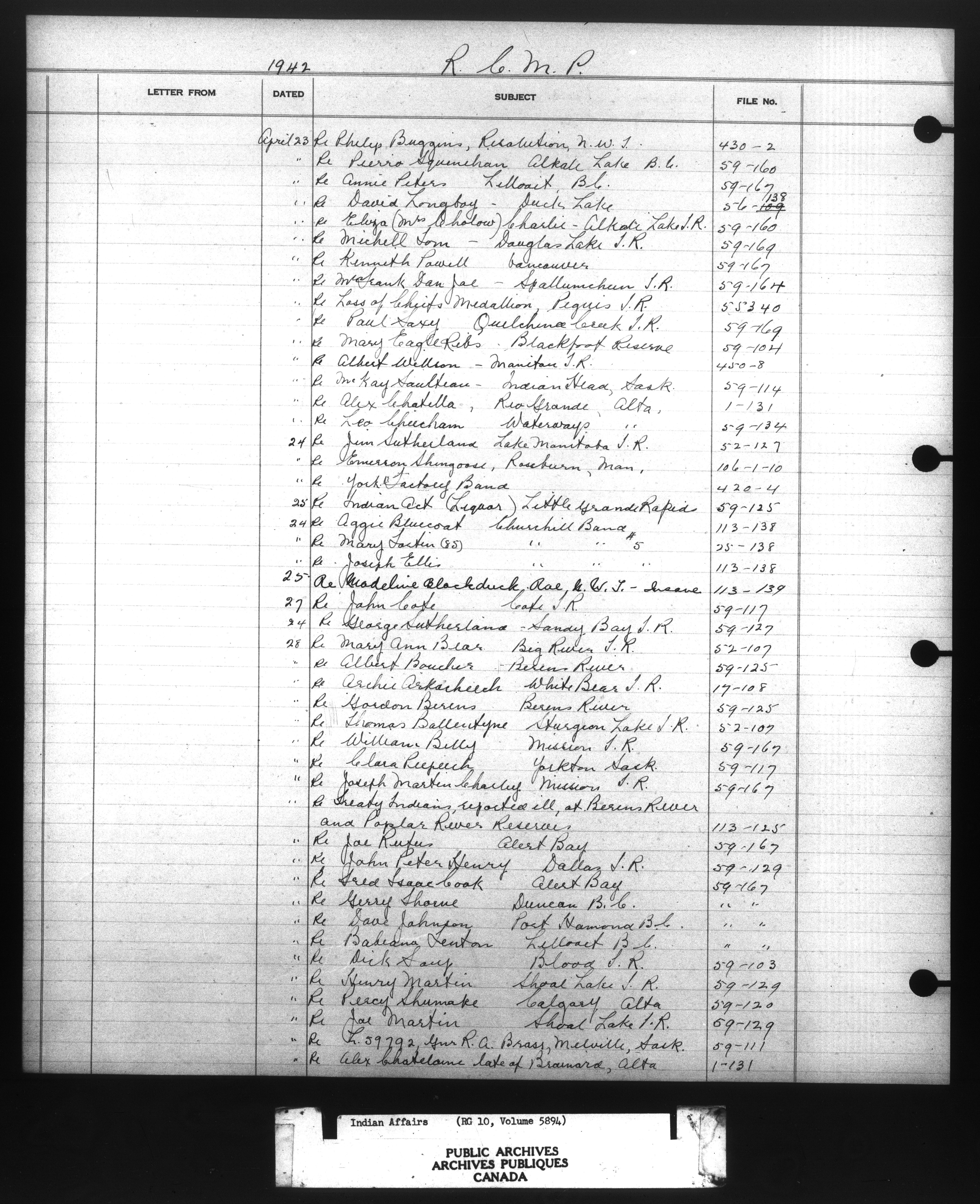 Department of Indian Affairs : Indexed Registers for Western Canada - 10956
