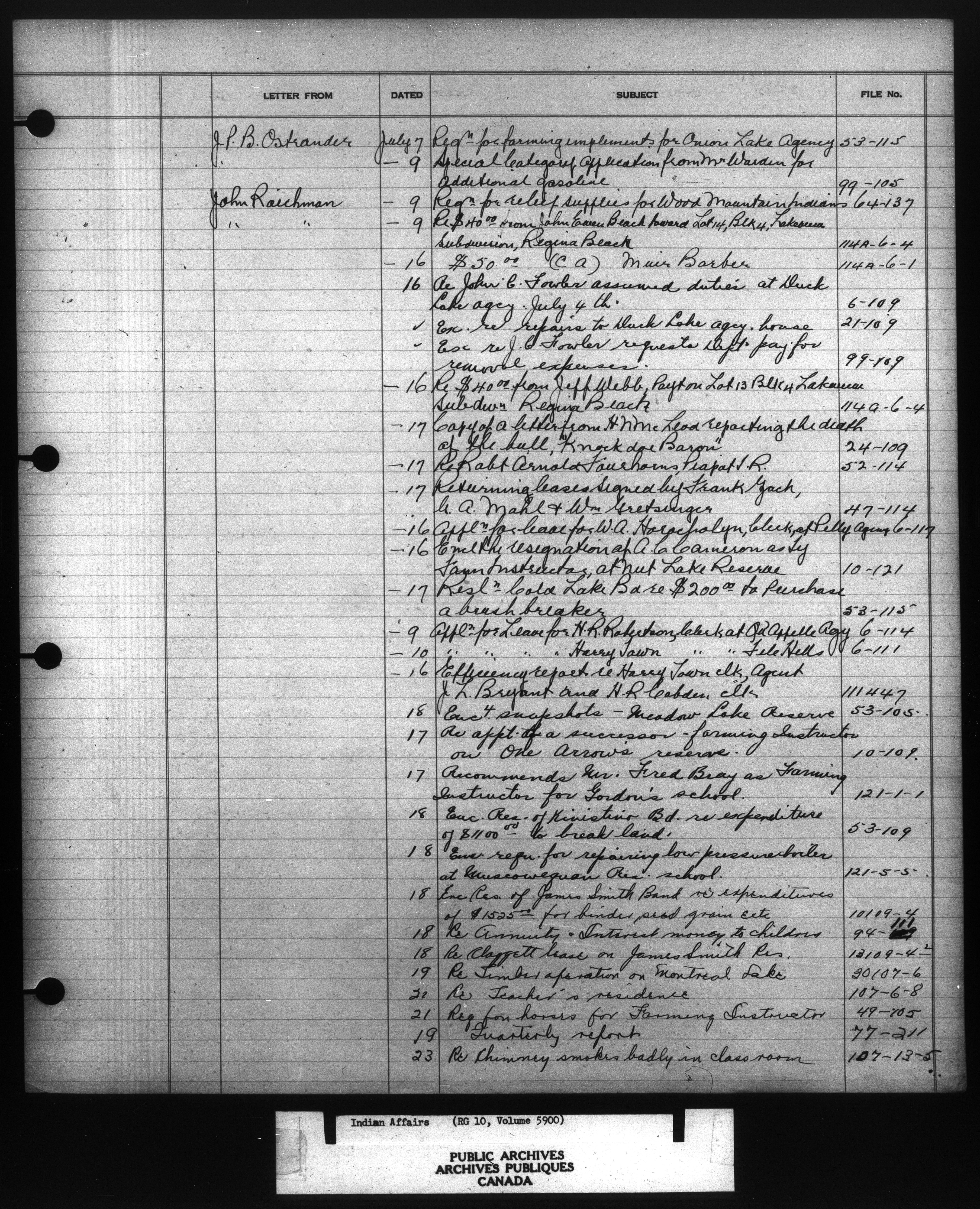 Department of Indian Affairs : Indexed Registers for Western Canada - 10959