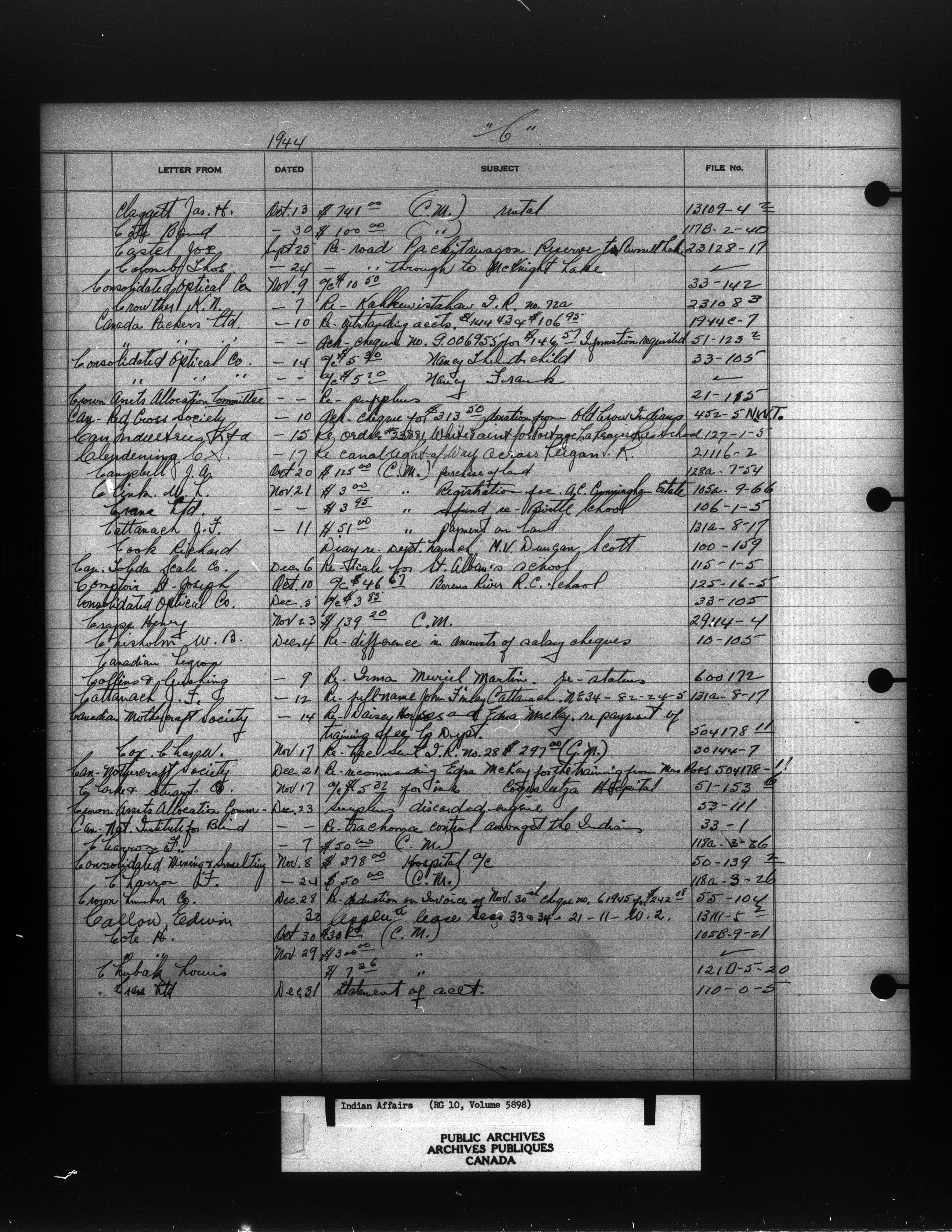 Department of Indian Affairs, Headquarters central registry system :registers, indices and indexed registers : C-10960