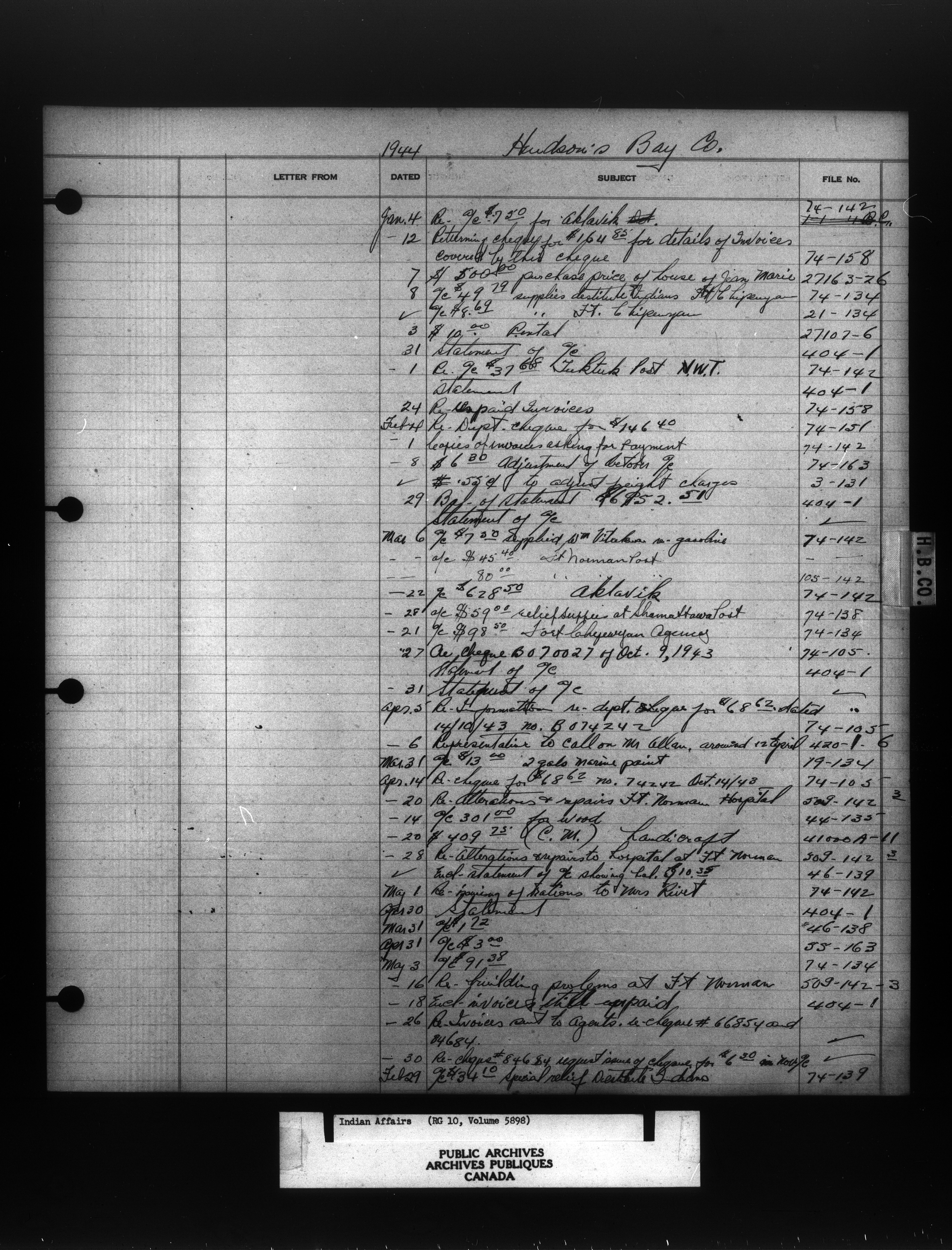 Department of Indian Affairs, Headquarters central registry system :registers, indices and indexed registers : C-10960