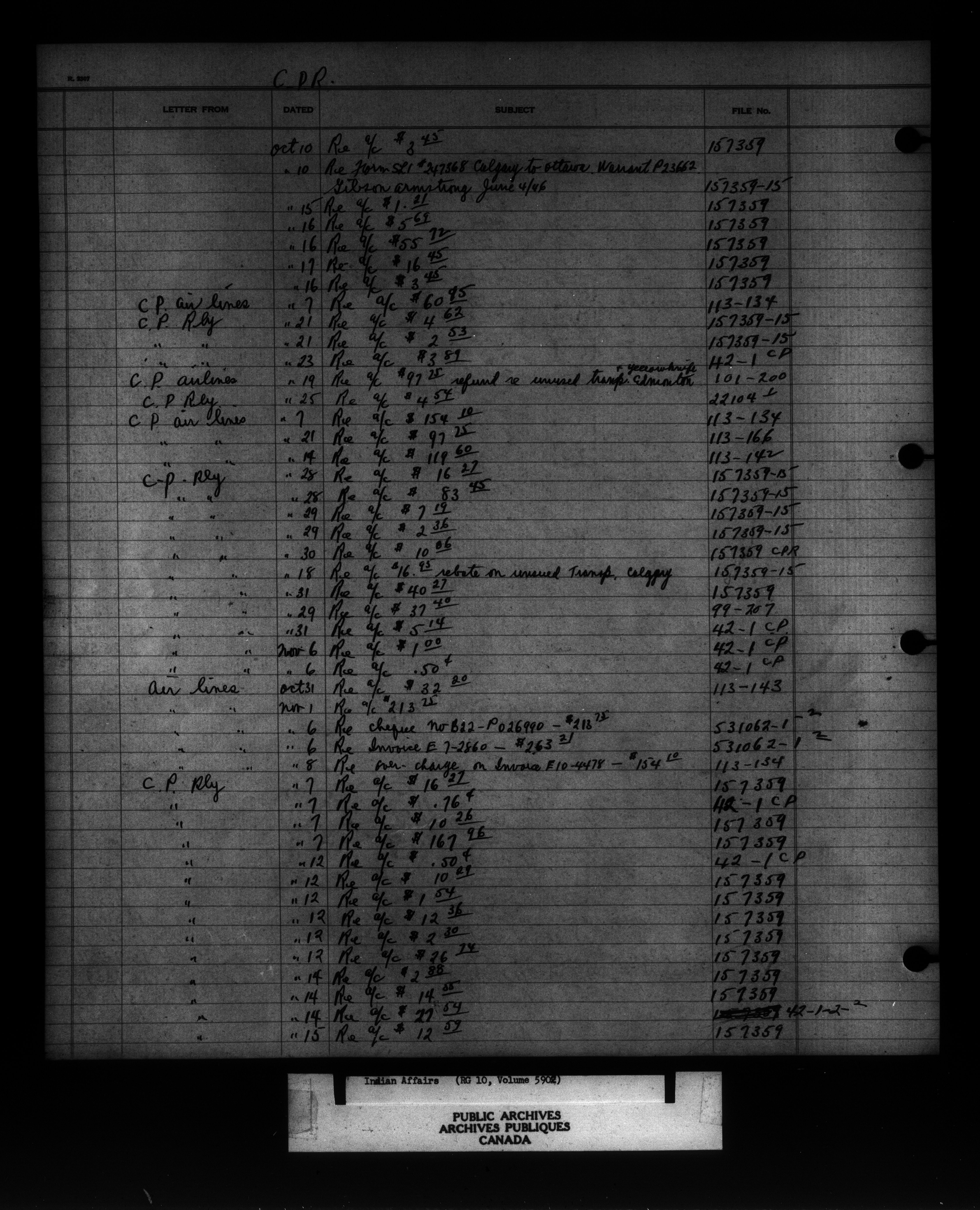 Department of Indian Affairs : Indexed Registers for Western Canada - 10961