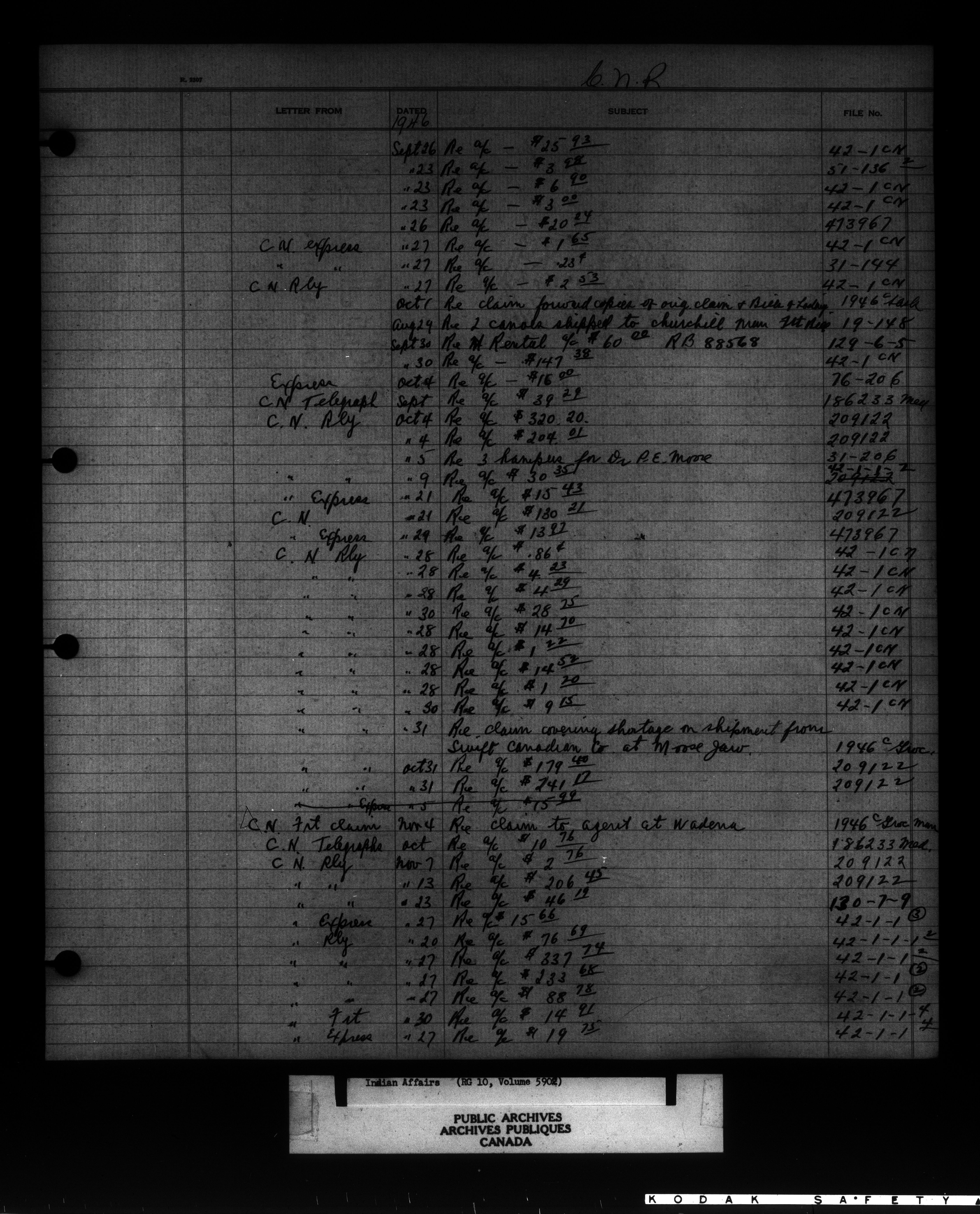 Department of Indian Affairs : Indexed Registers for Western Canada - 10961
