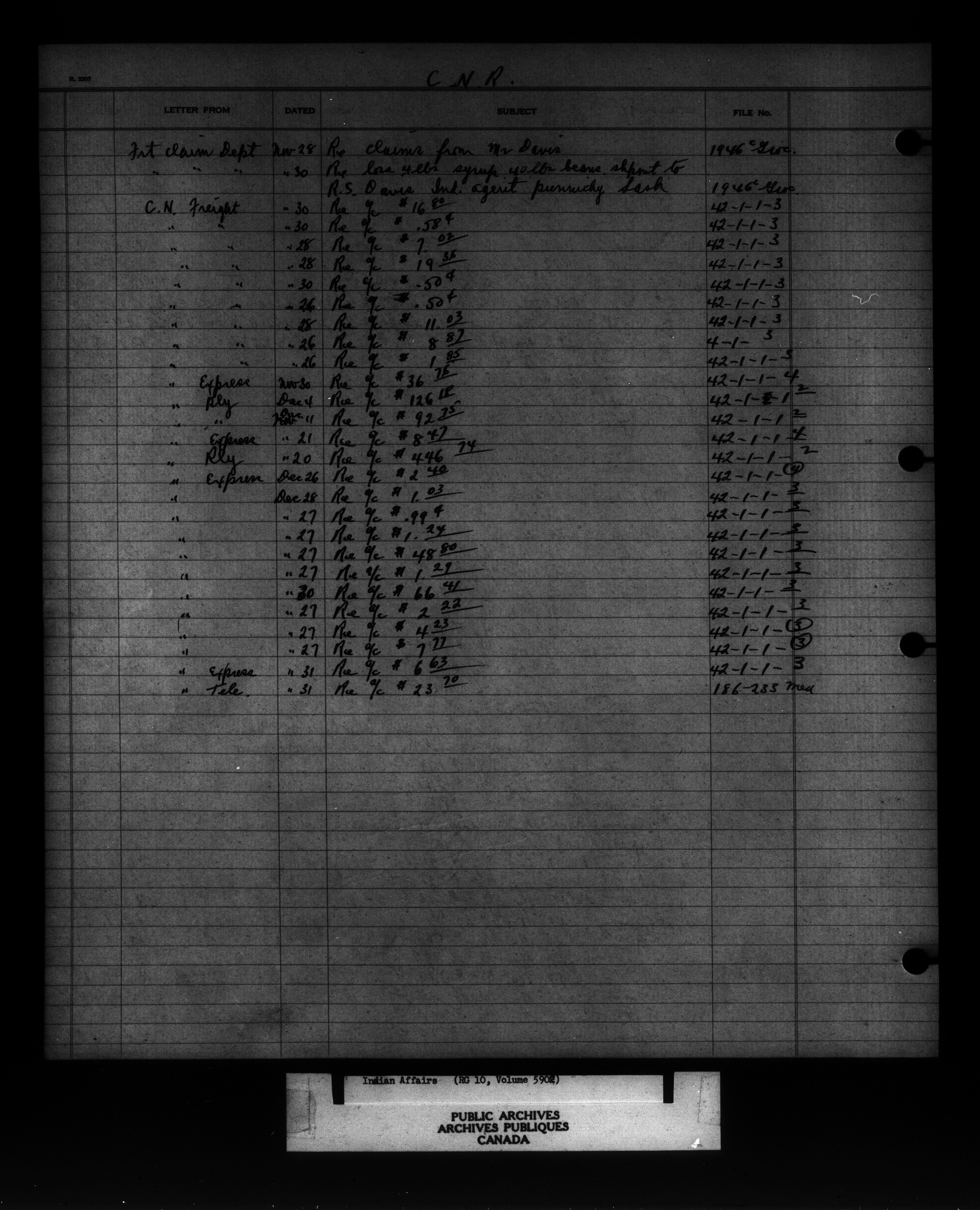 Department of Indian Affairs : Indexed Registers for Western Canada - 10961