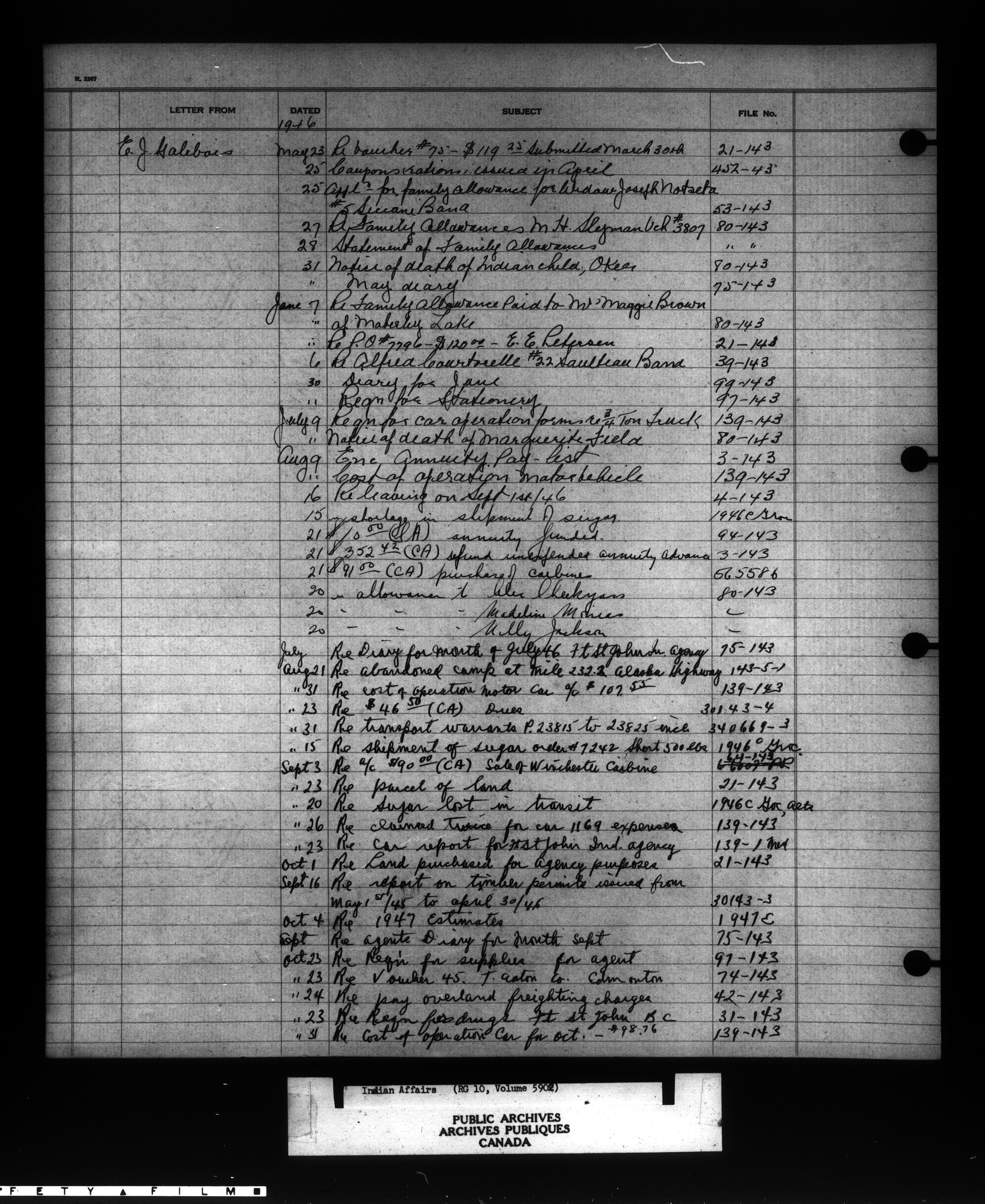 Department of Indian Affairs : Indexed Registers for Western Canada - 10961