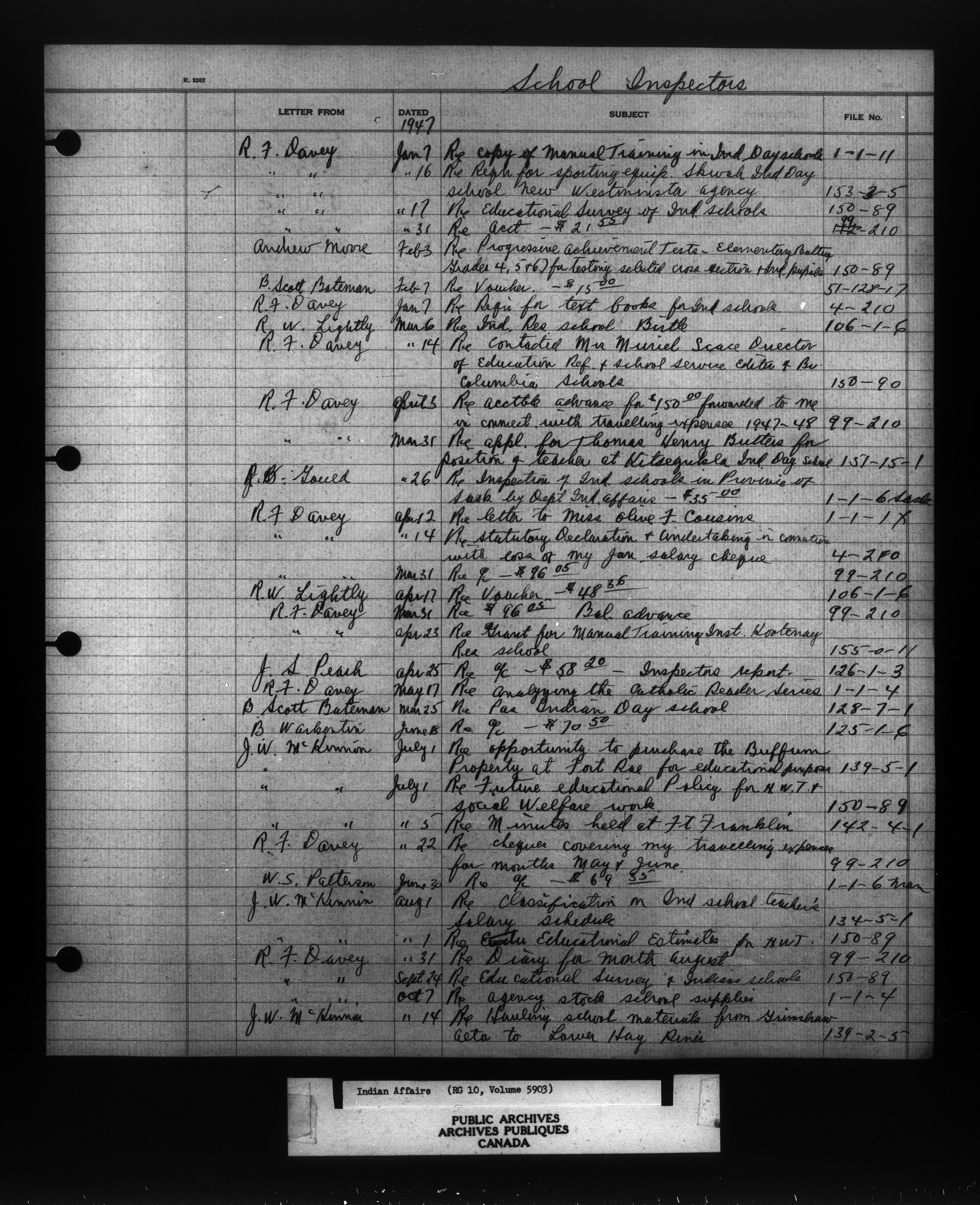 Department of Indian Affairs : Indexed Registers for Western Canada - 10962