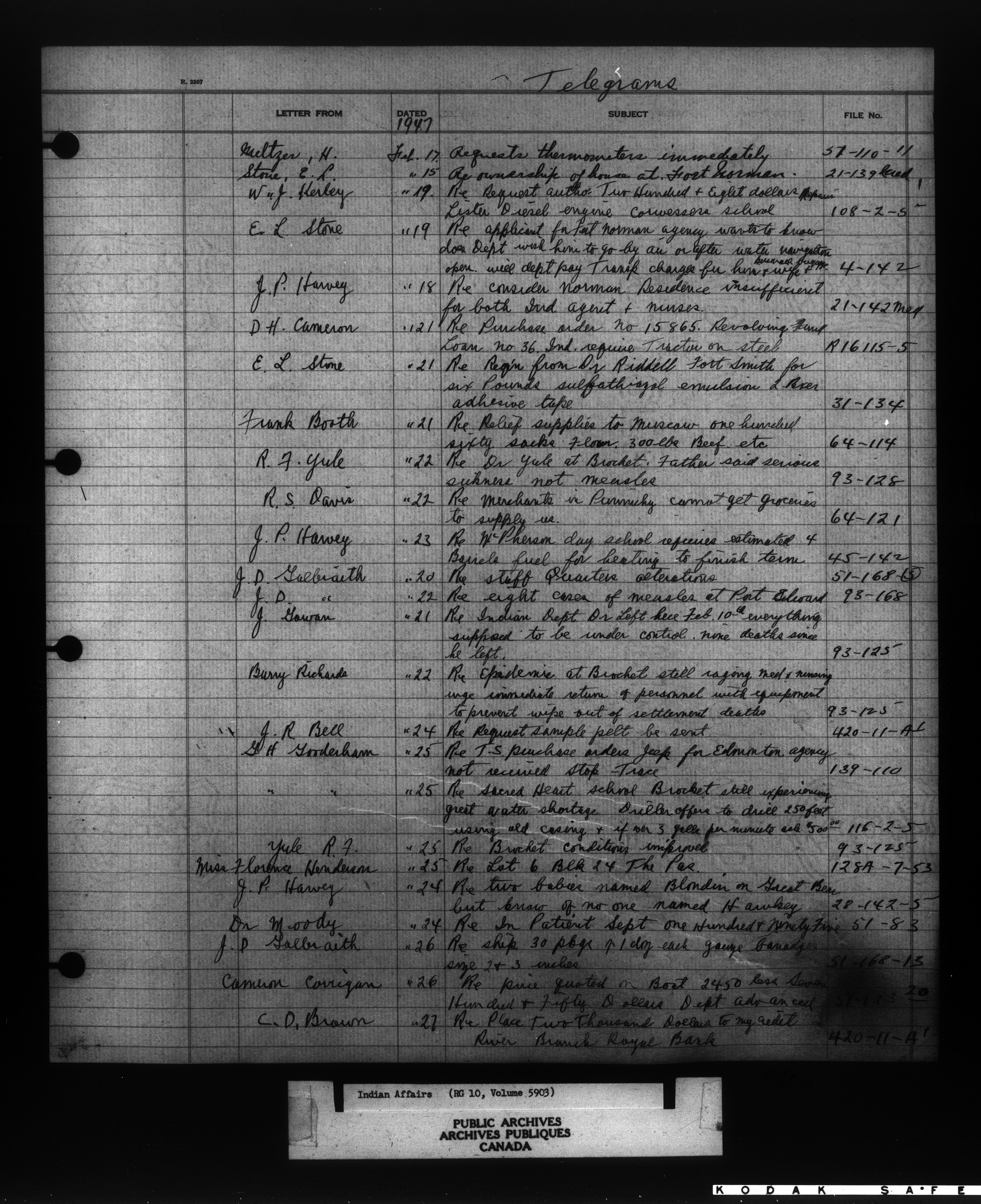 Department of Indian Affairs : Indexed Registers for Western Canada - 10962