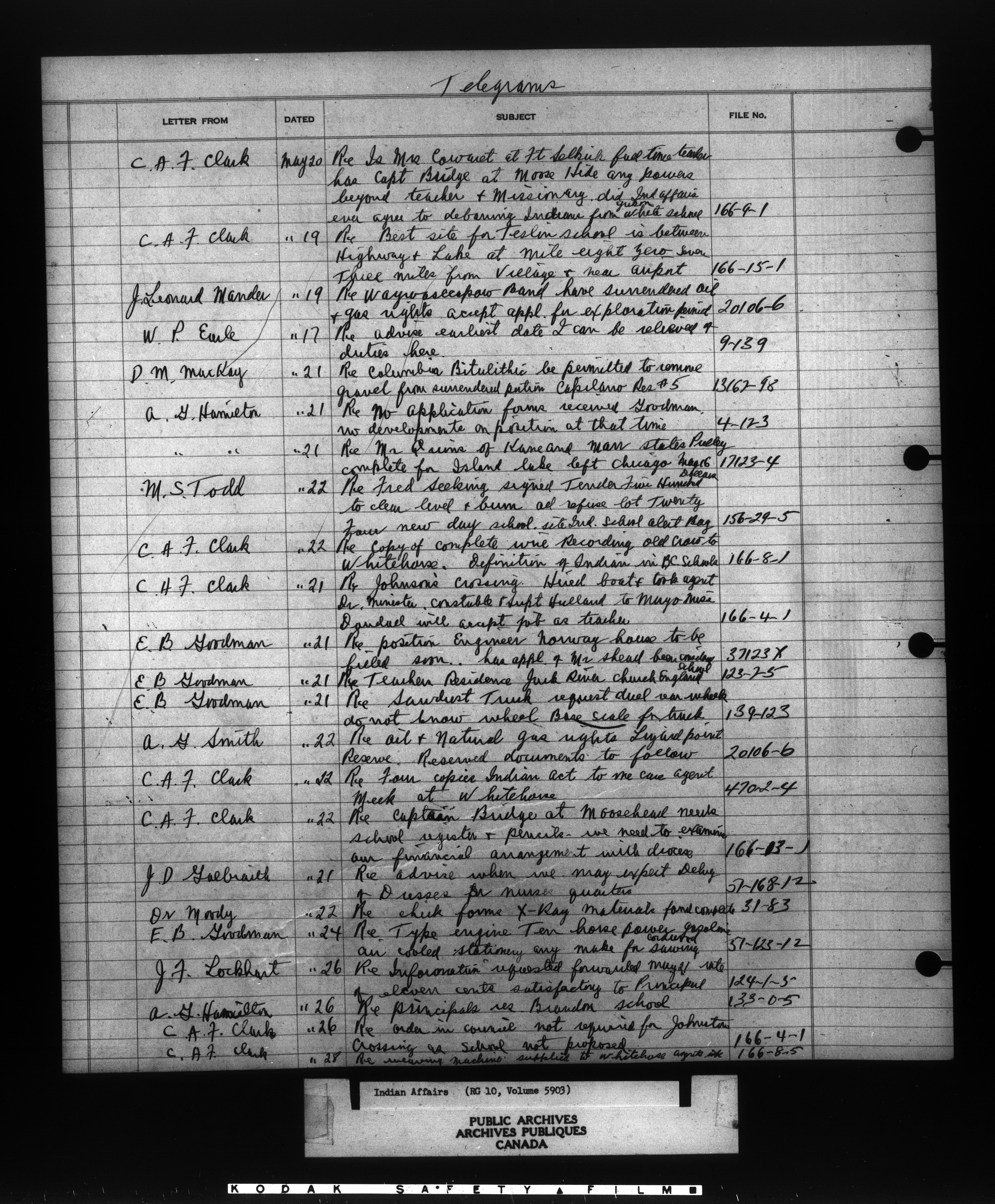 Department of Indian Affairs : Indexed Registers for Western Canada - 10962