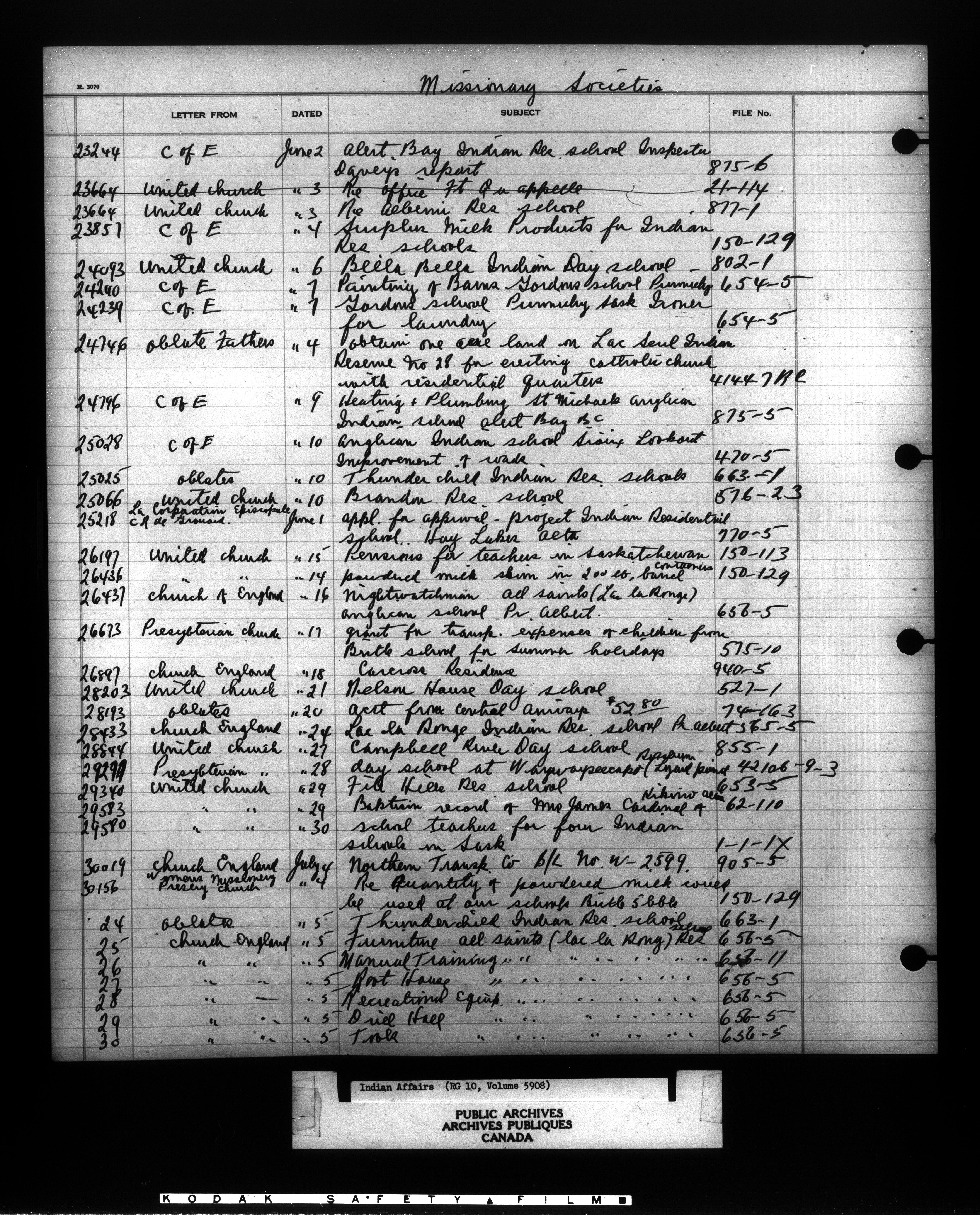 Department of Indian Affairs : Indexed Registers for Western Canada - 10965