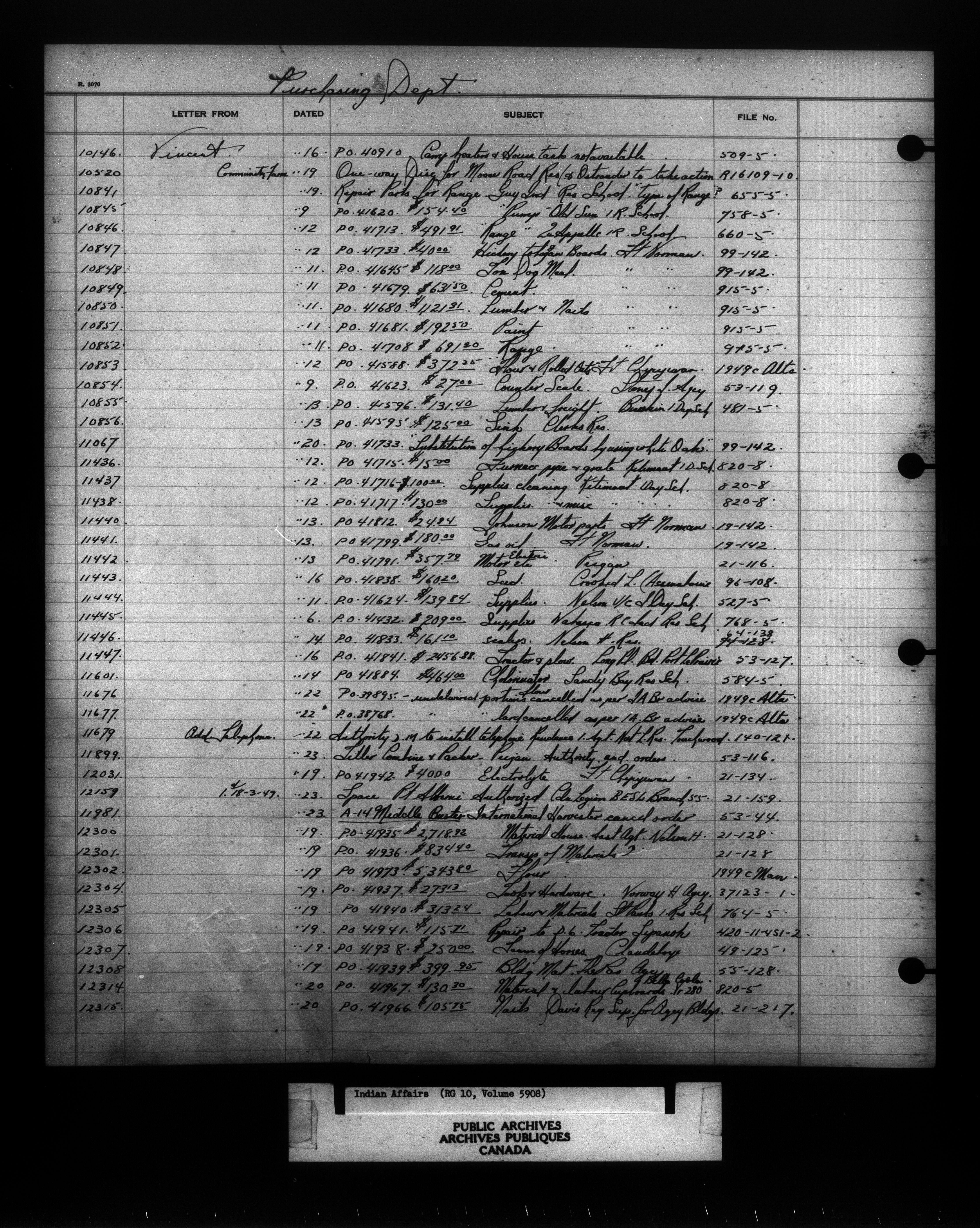 Department of Indian Affairs : Indexed Registers for Western Canada - 10965