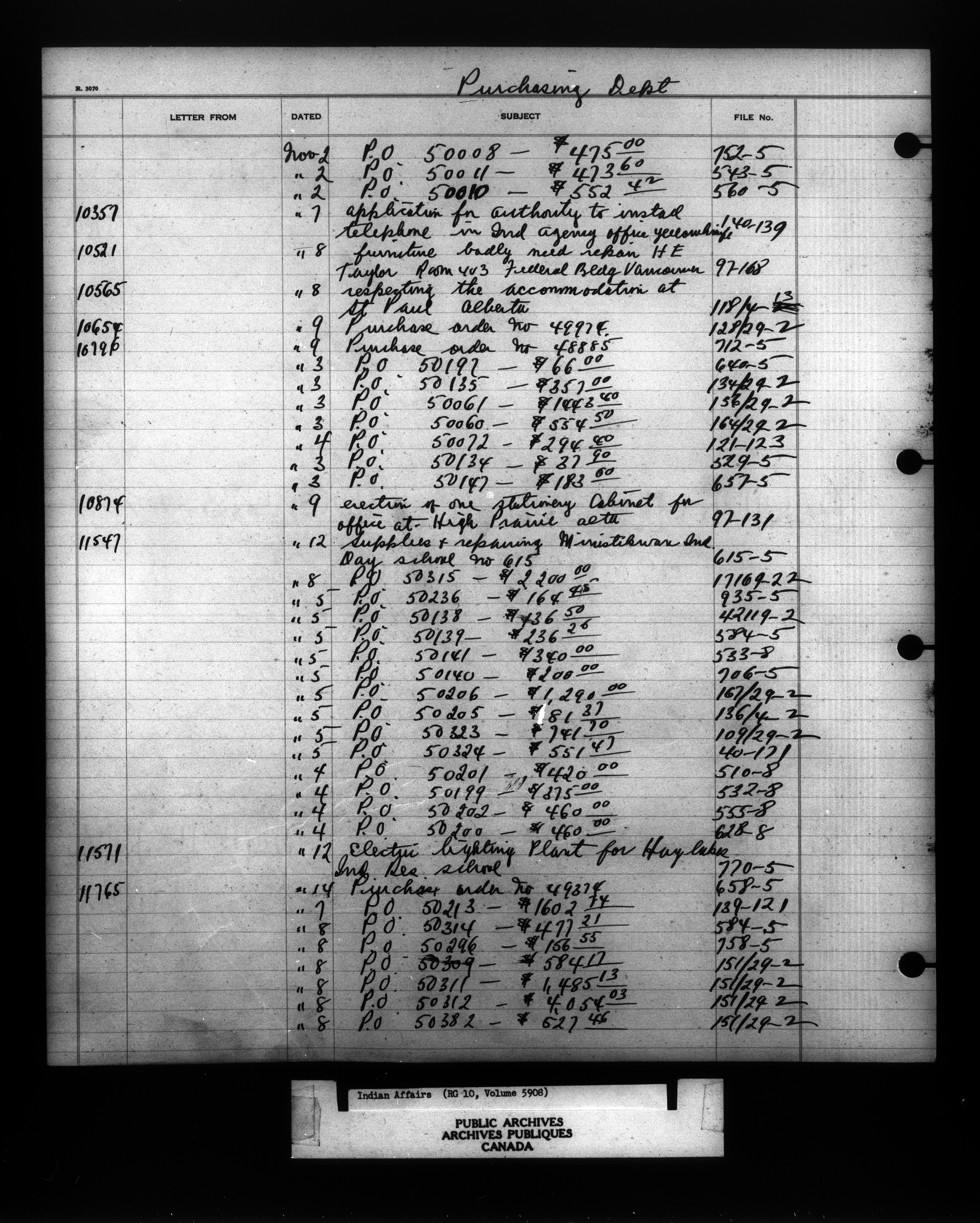 Department of Indian Affairs : Indexed Registers for Western Canada - 10965