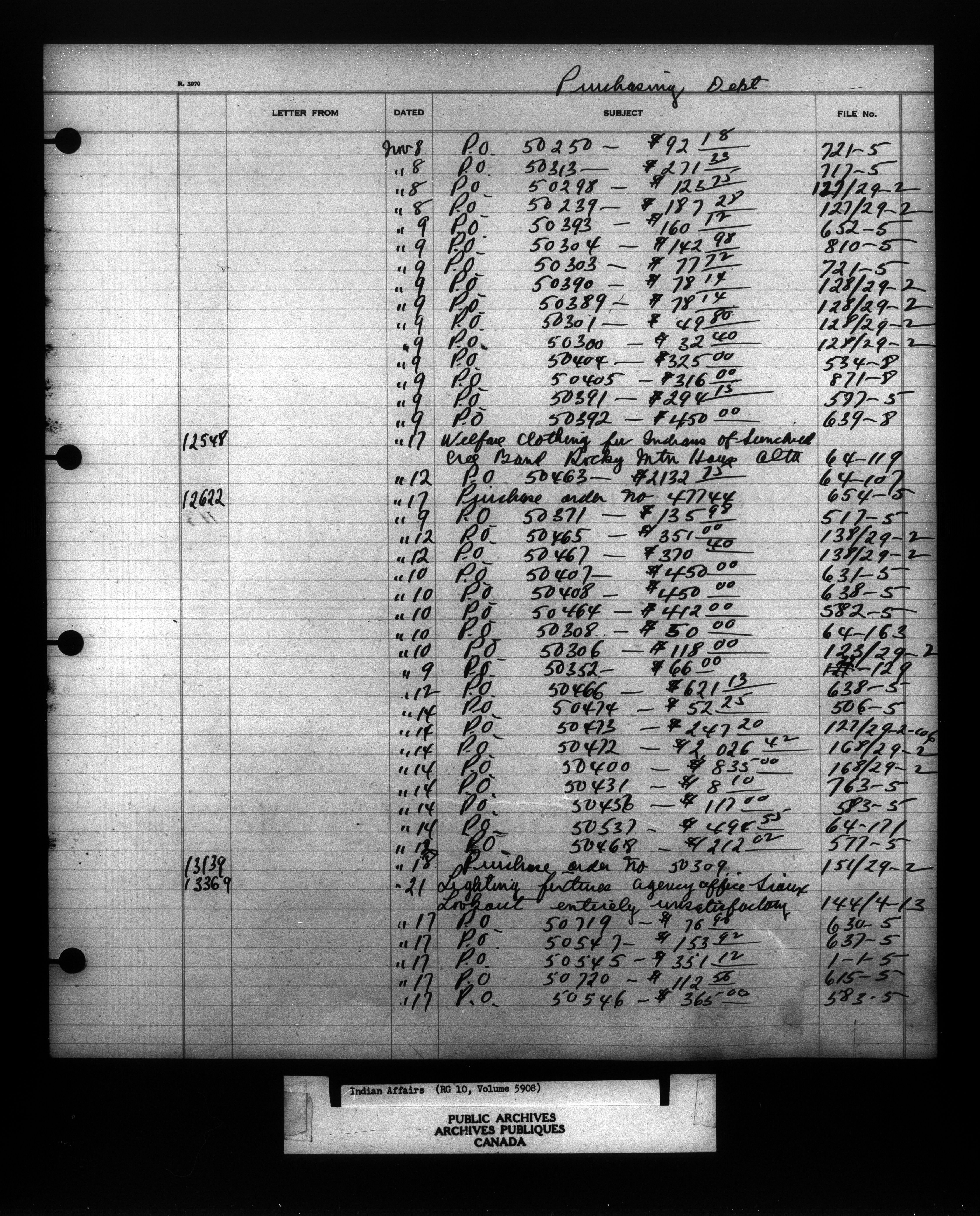 Department of Indian Affairs : Indexed Registers for Western Canada - 10965