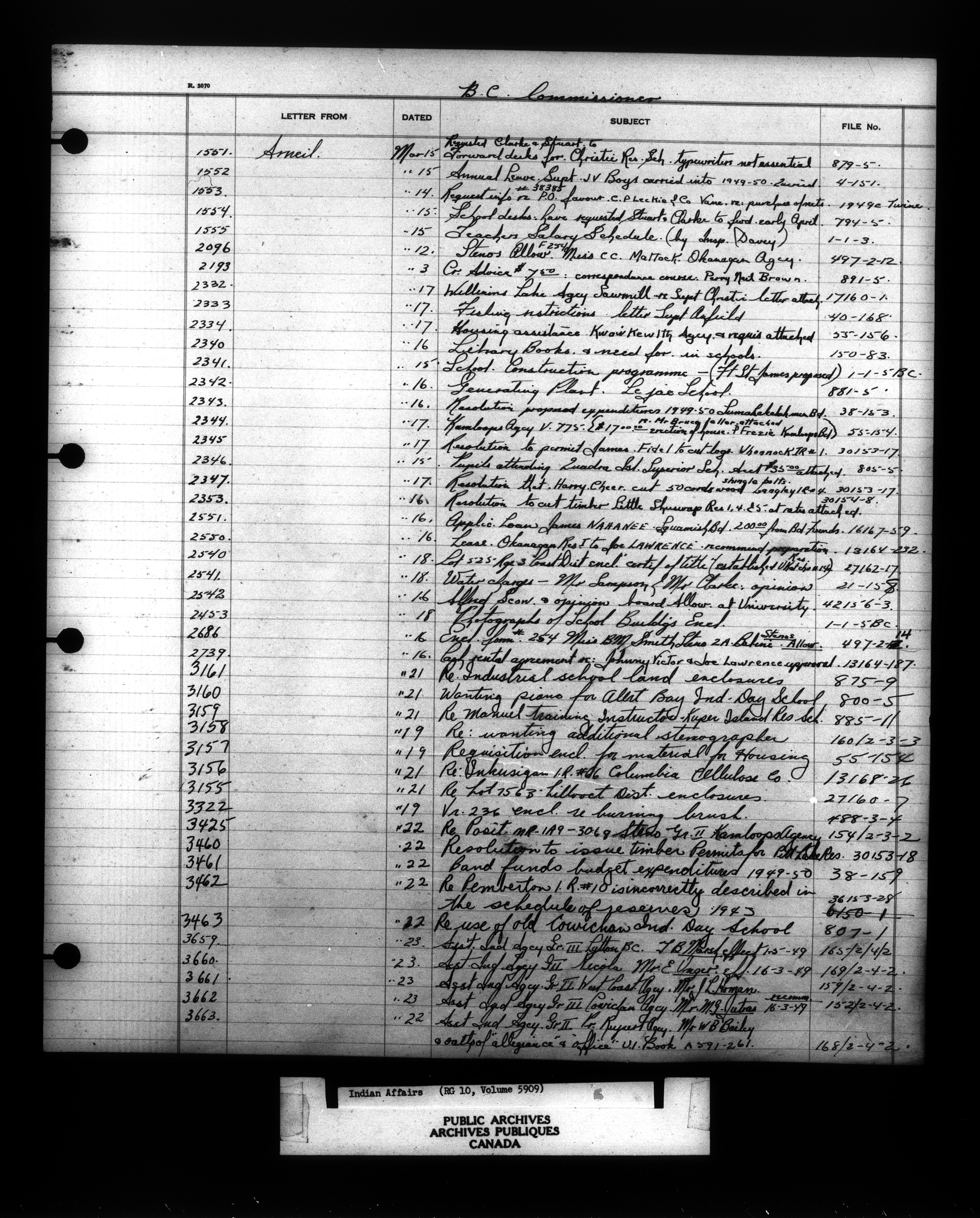 Department of Indian Affairs, Headquarters central registry system :registers, indices and indexed registers : C-10966