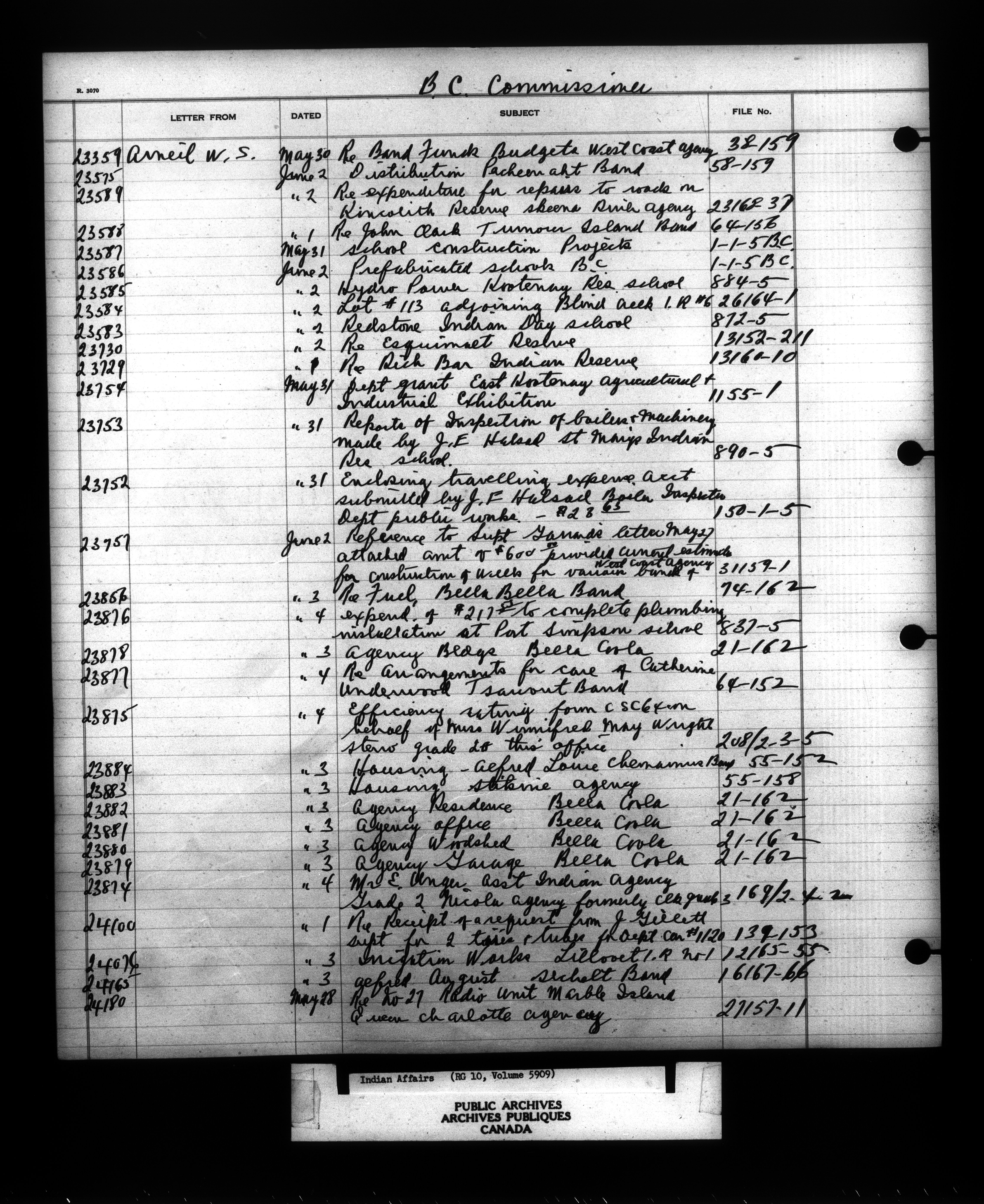 Department of Indian Affairs, Headquarters central registry system :registers, indices and indexed registers : C-10966