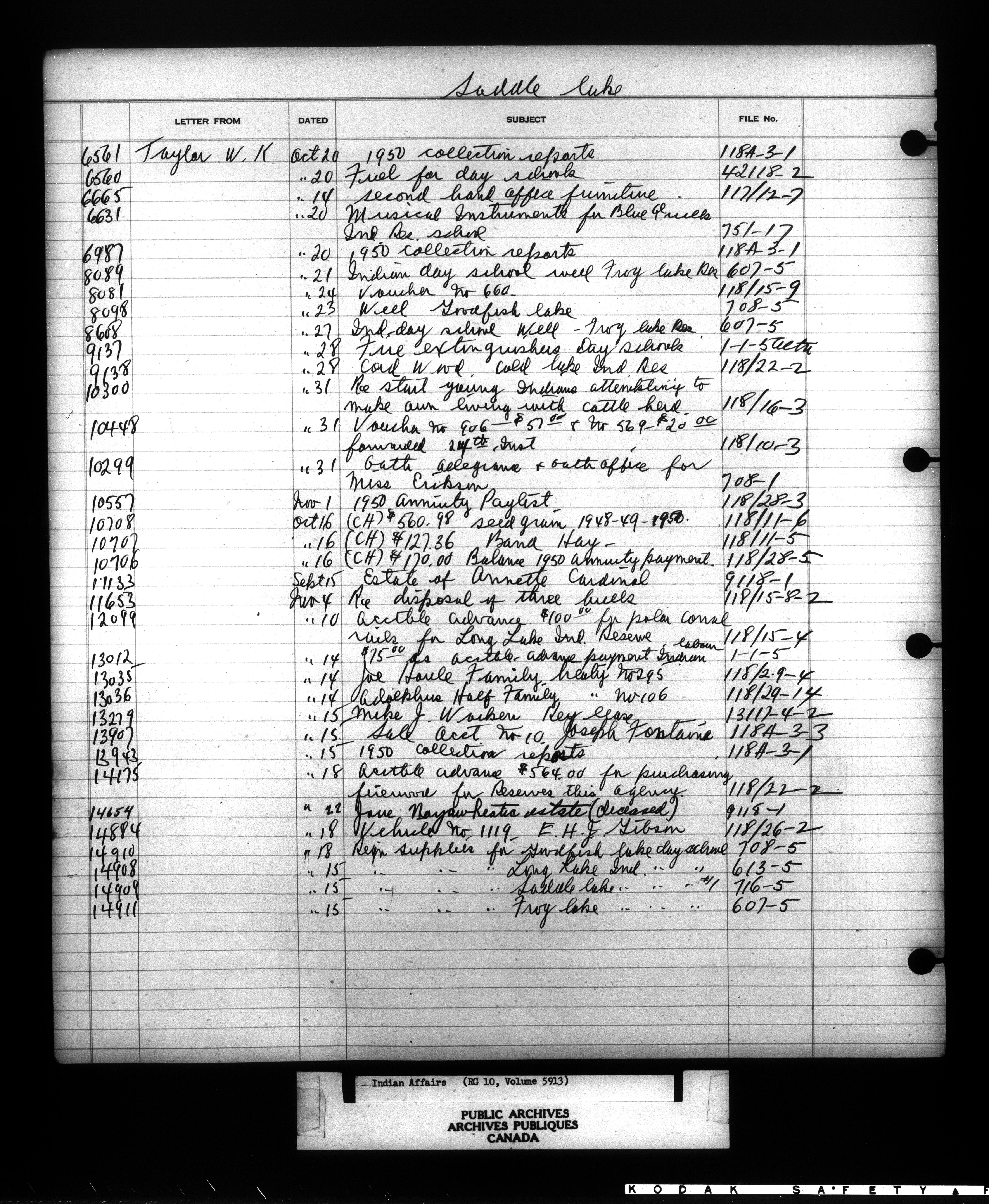 Department of Indian Affairs : Indexed Registers for Western Canada - 10966