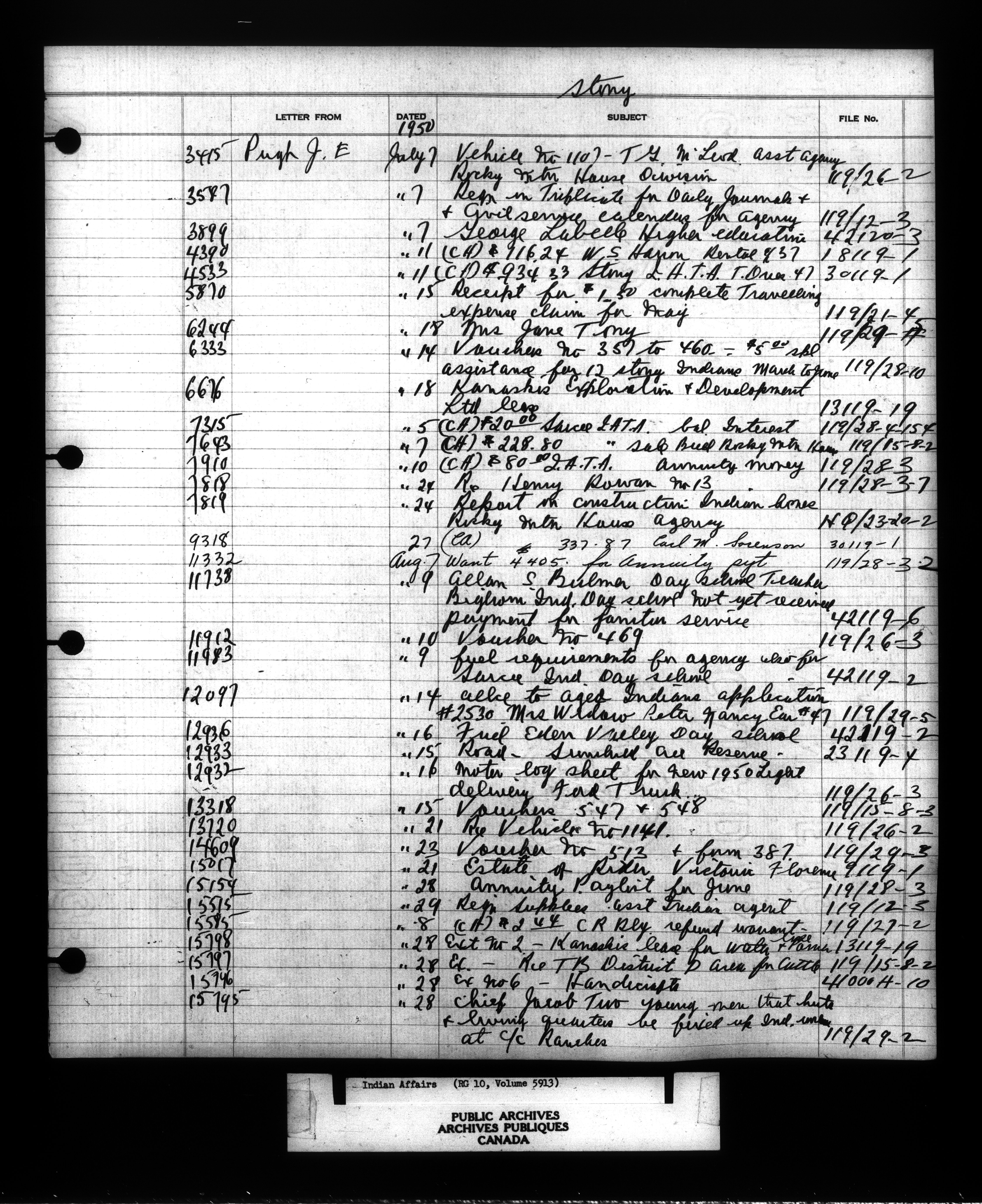 Department of Indian Affairs, Headquarters central registry system :registers, indices and indexed registers : C-10966
