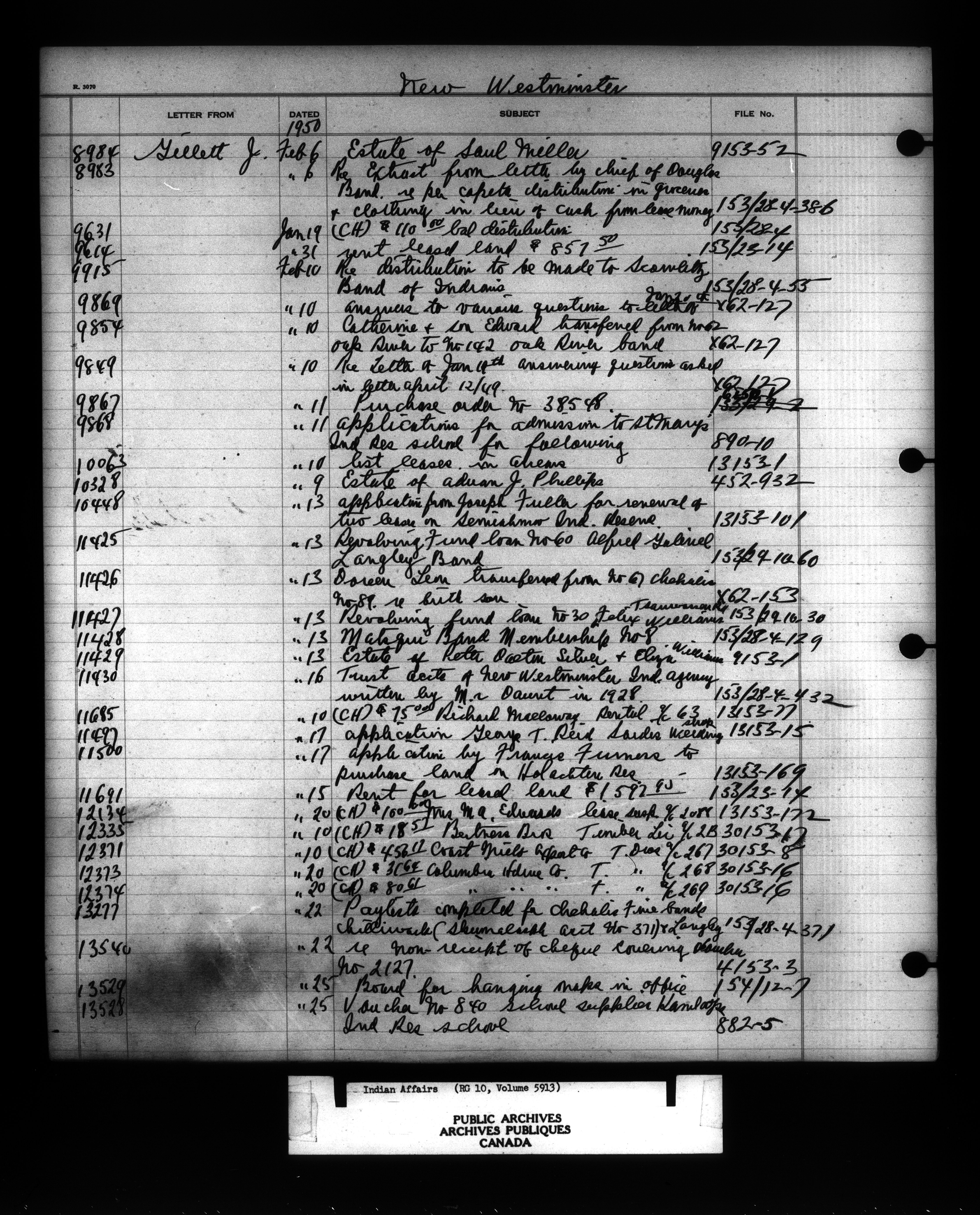 Department of Indian Affairs : Indexed Registers for Western Canada - 10967
