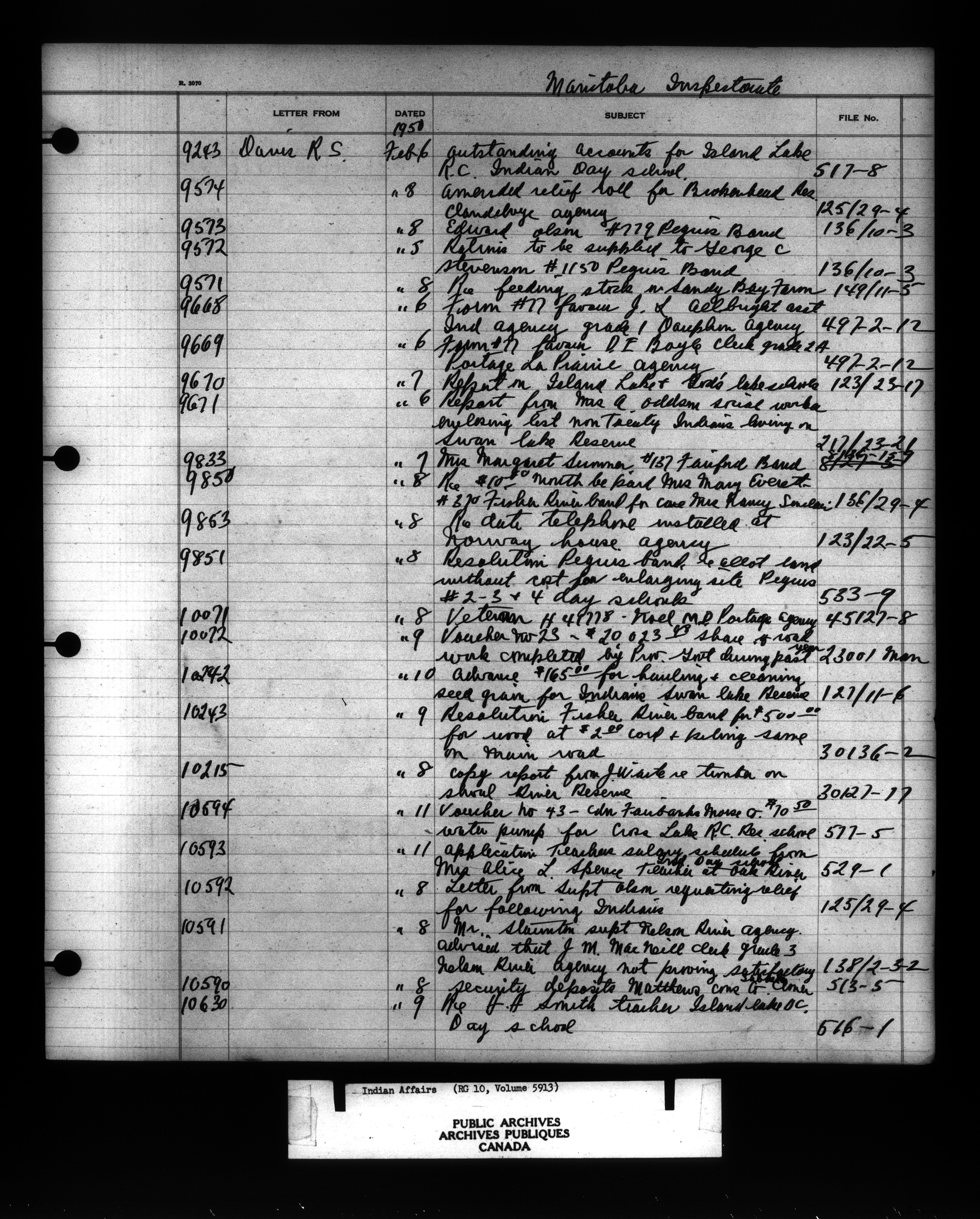 Department of Indian Affairs : Indexed Registers for Western Canada - 10967