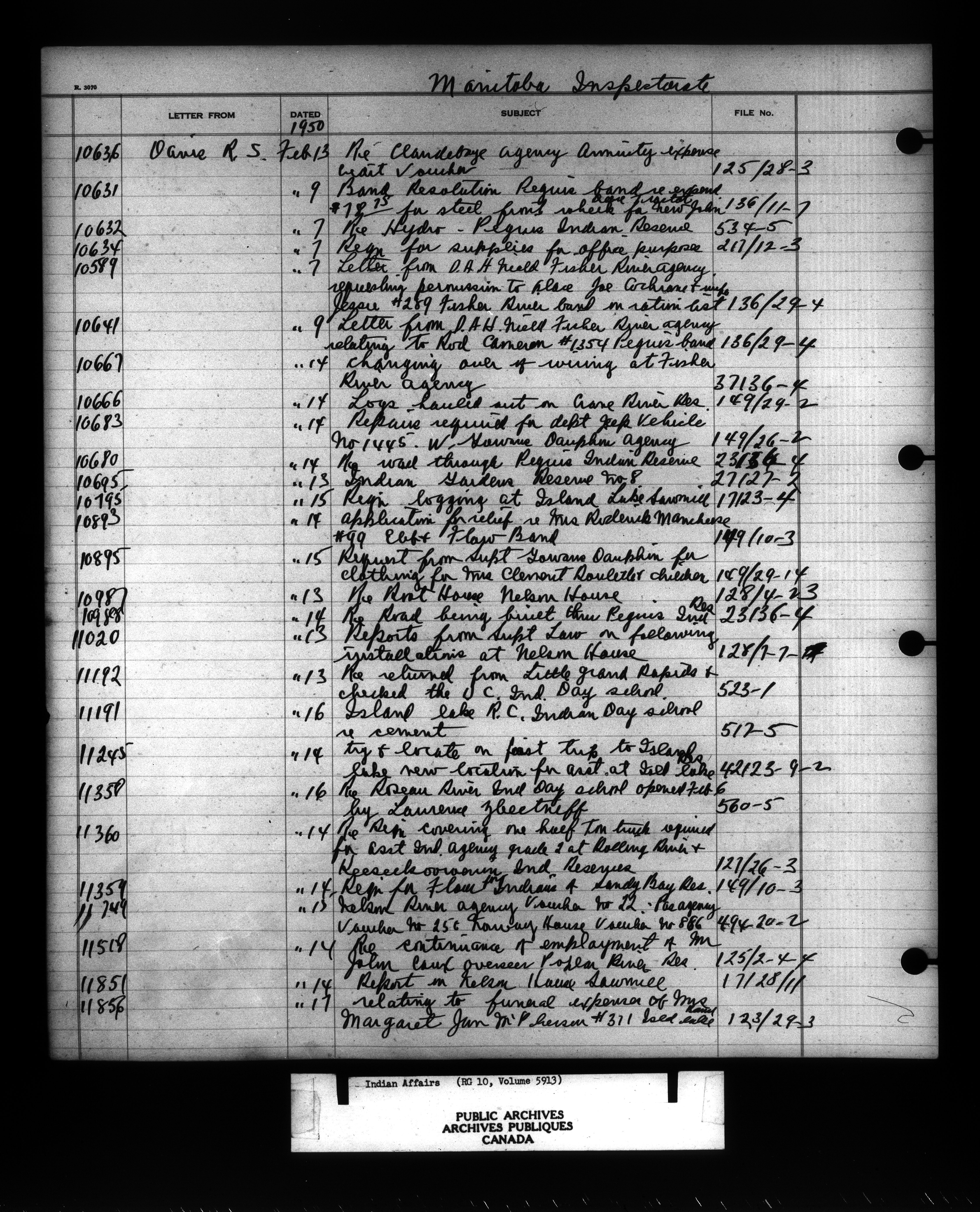 Department of Indian Affairs : Indexed Registers for Western Canada - 10967