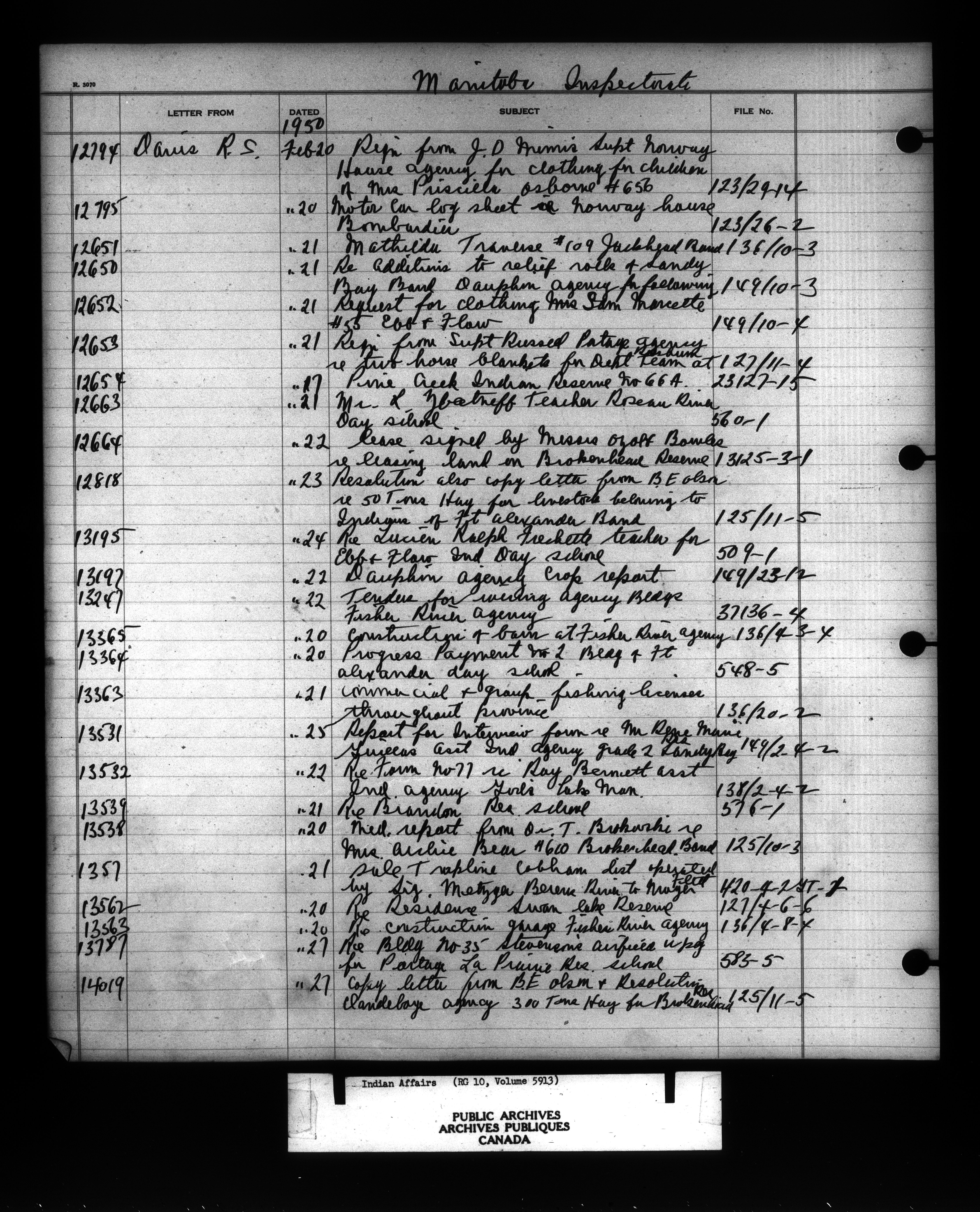 Department of Indian Affairs : Indexed Registers for Western Canada - 10967