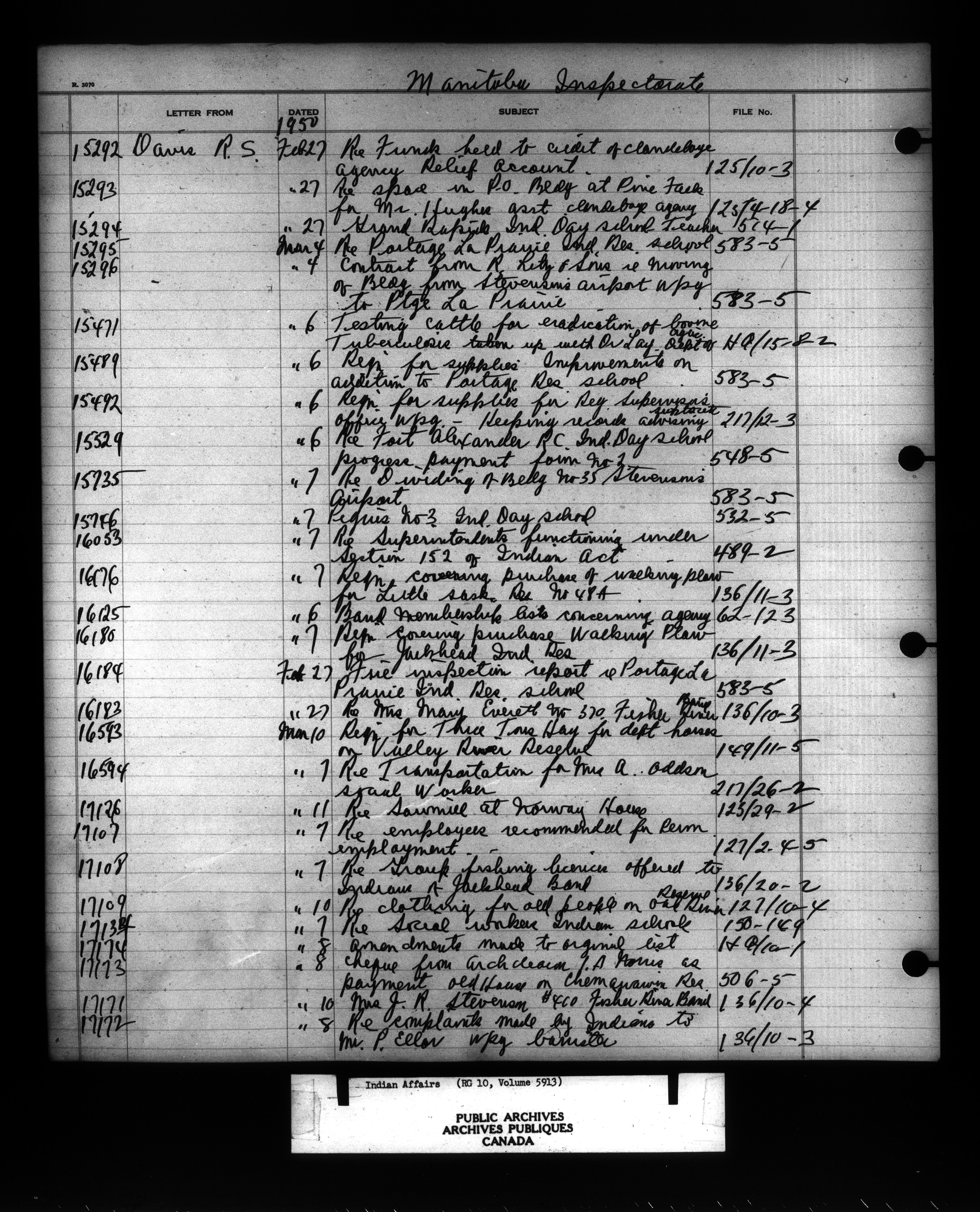 Department of Indian Affairs : Indexed Registers for Western Canada - 10967