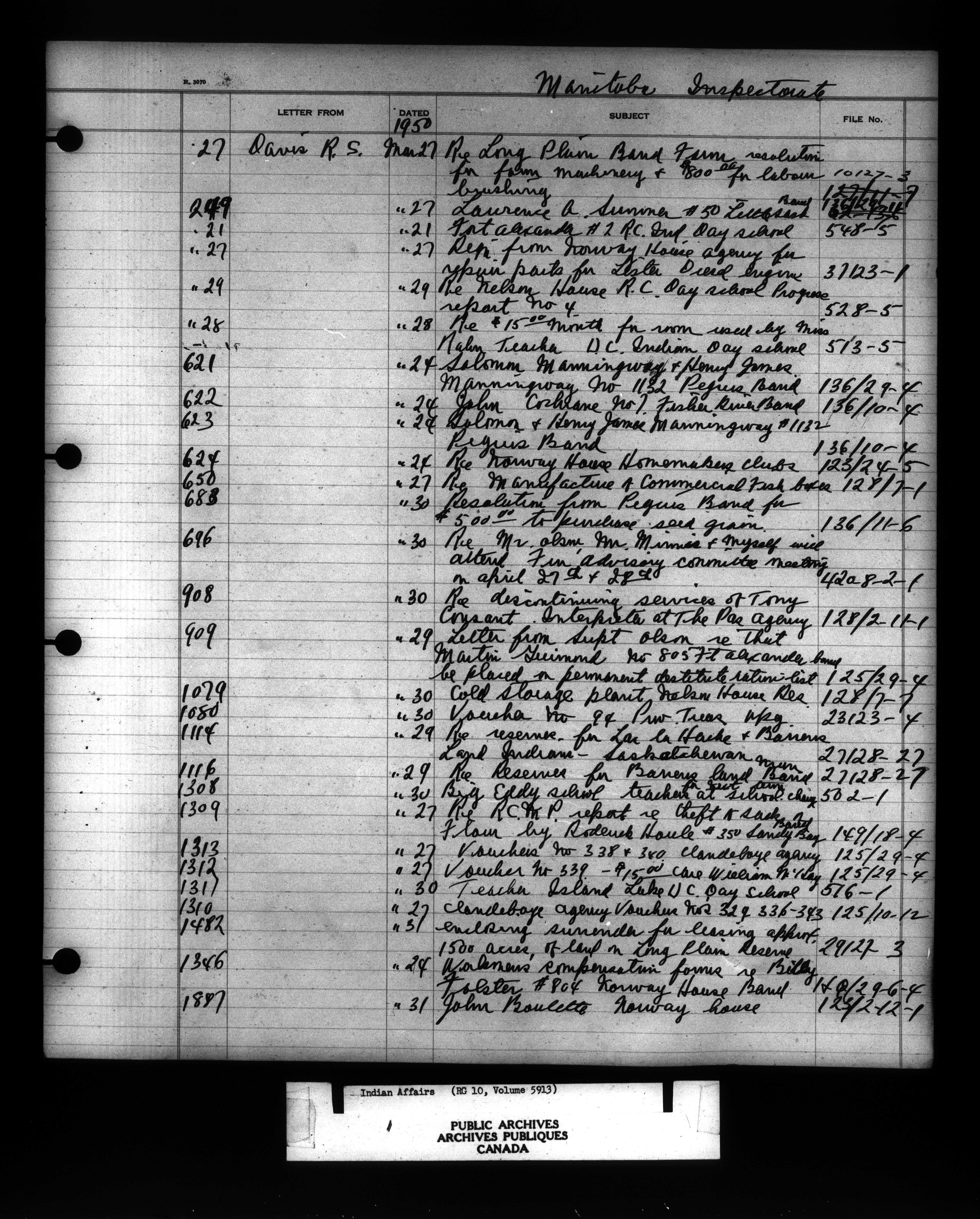 Department of Indian Affairs : Indexed Registers for Western Canada - 10967