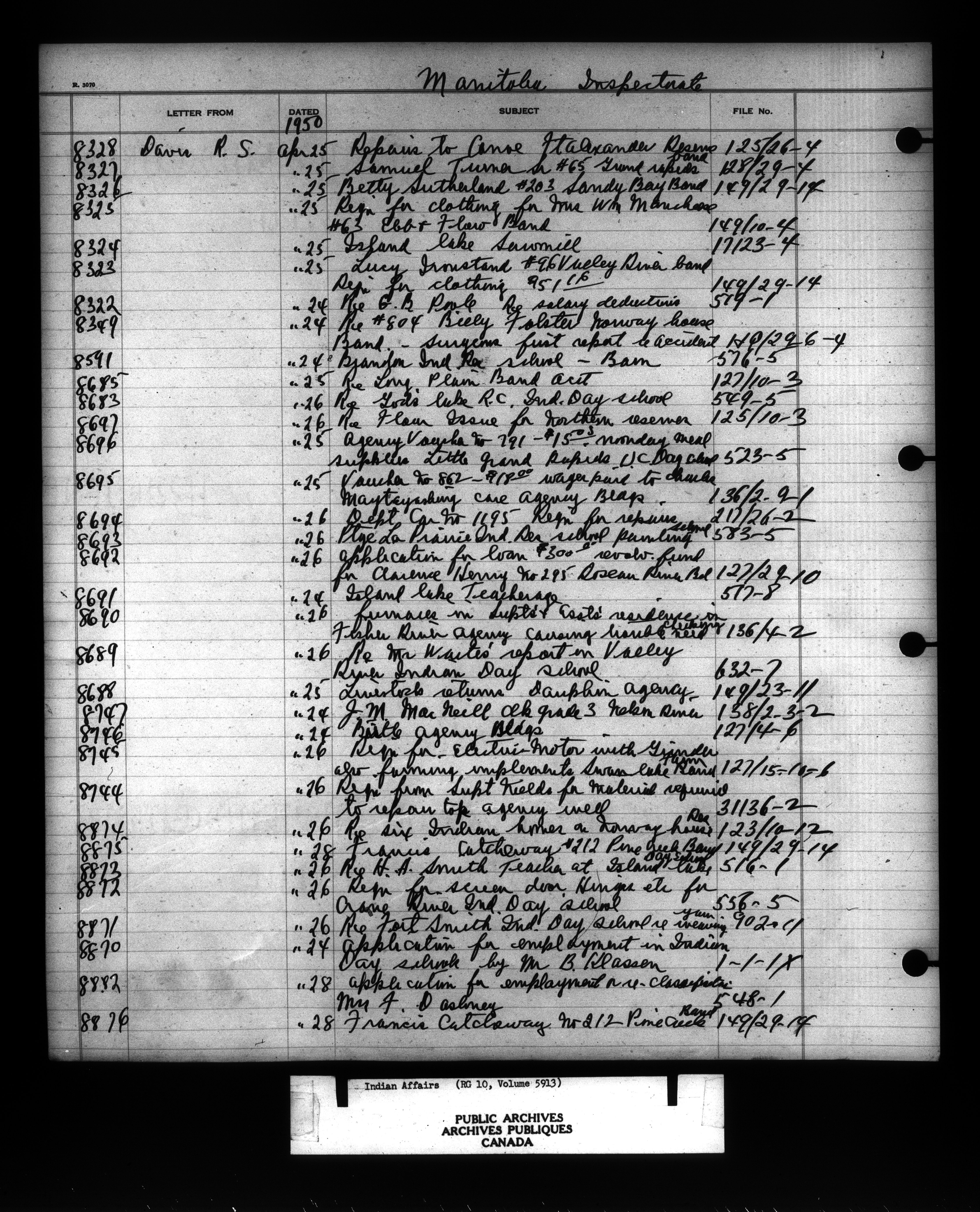 Department of Indian Affairs : Indexed Registers for Western Canada - 10967