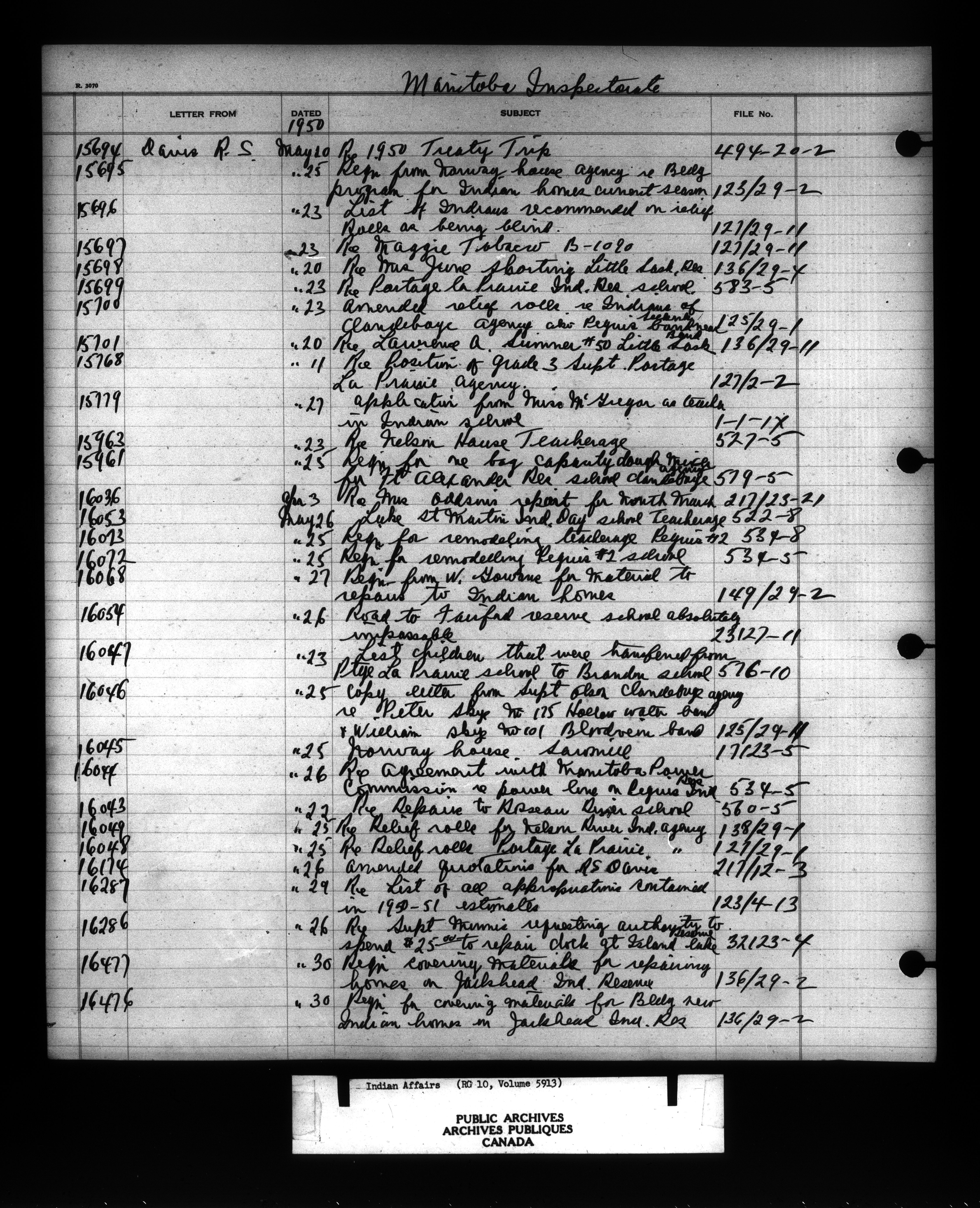 Department of Indian Affairs : Indexed Registers for Western Canada - 10967