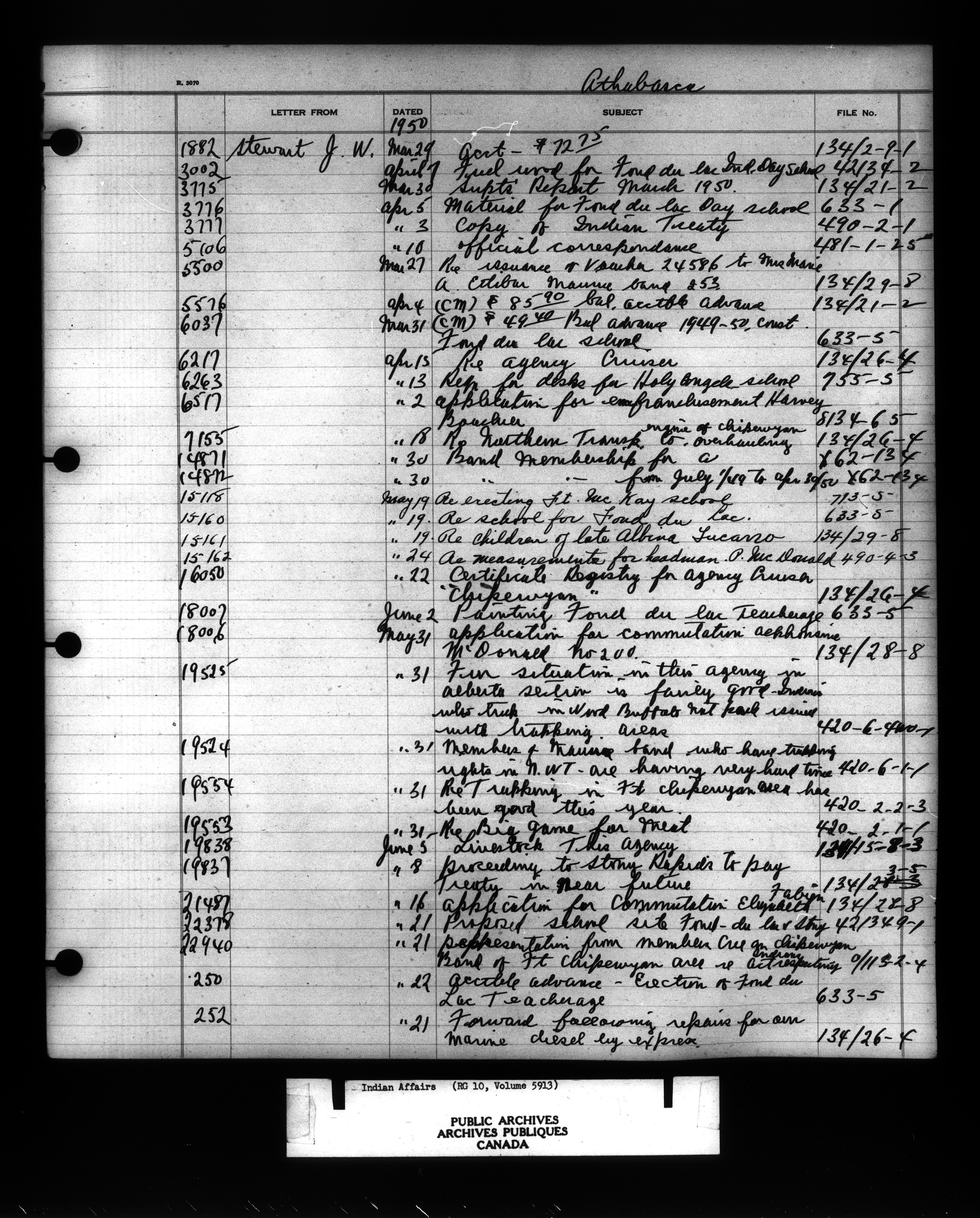 Department of Indian Affairs : Indexed Registers for Western Canada - 10967