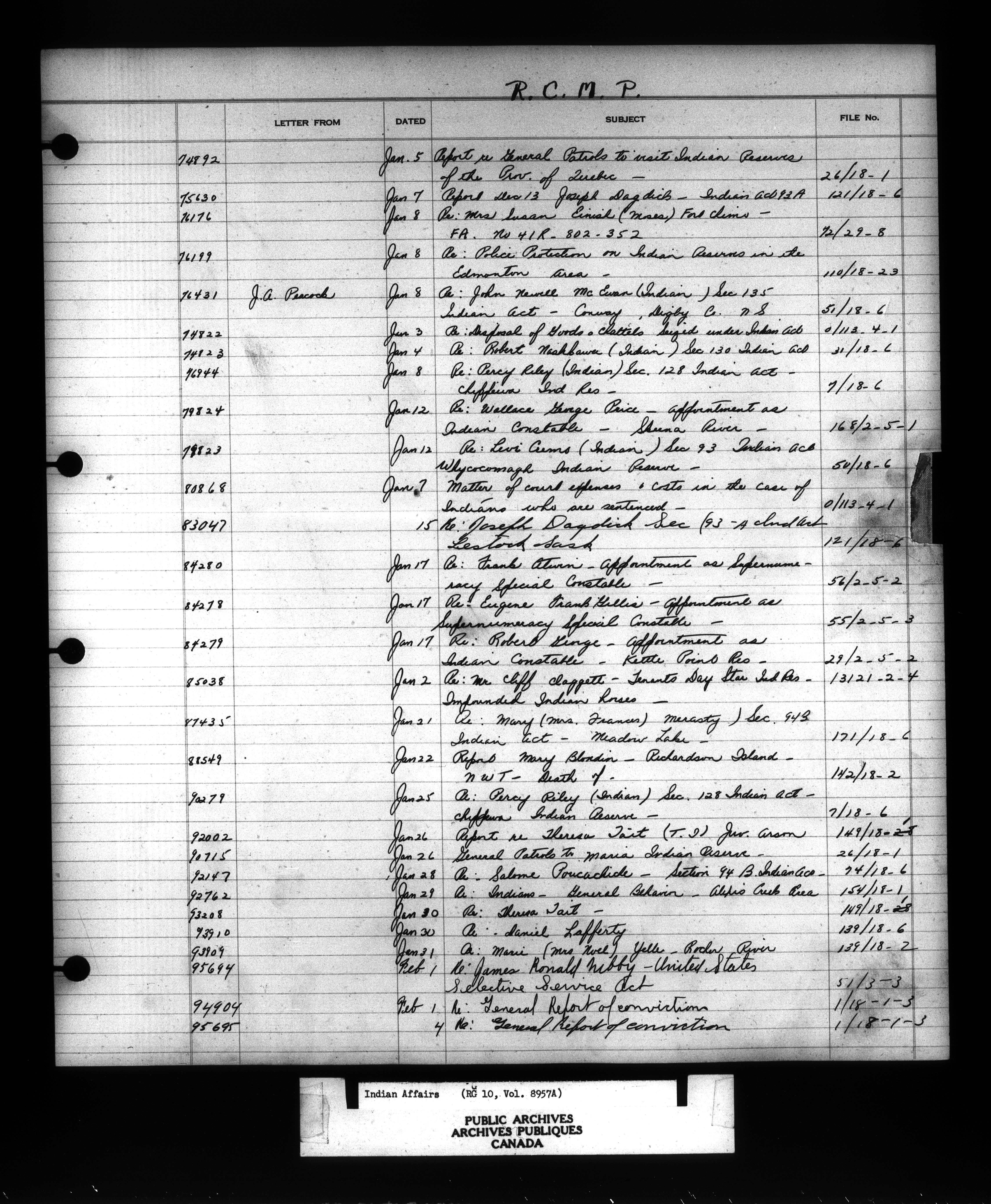Department of Indian Affairs : Indexed Registers for Western Canada - 10968