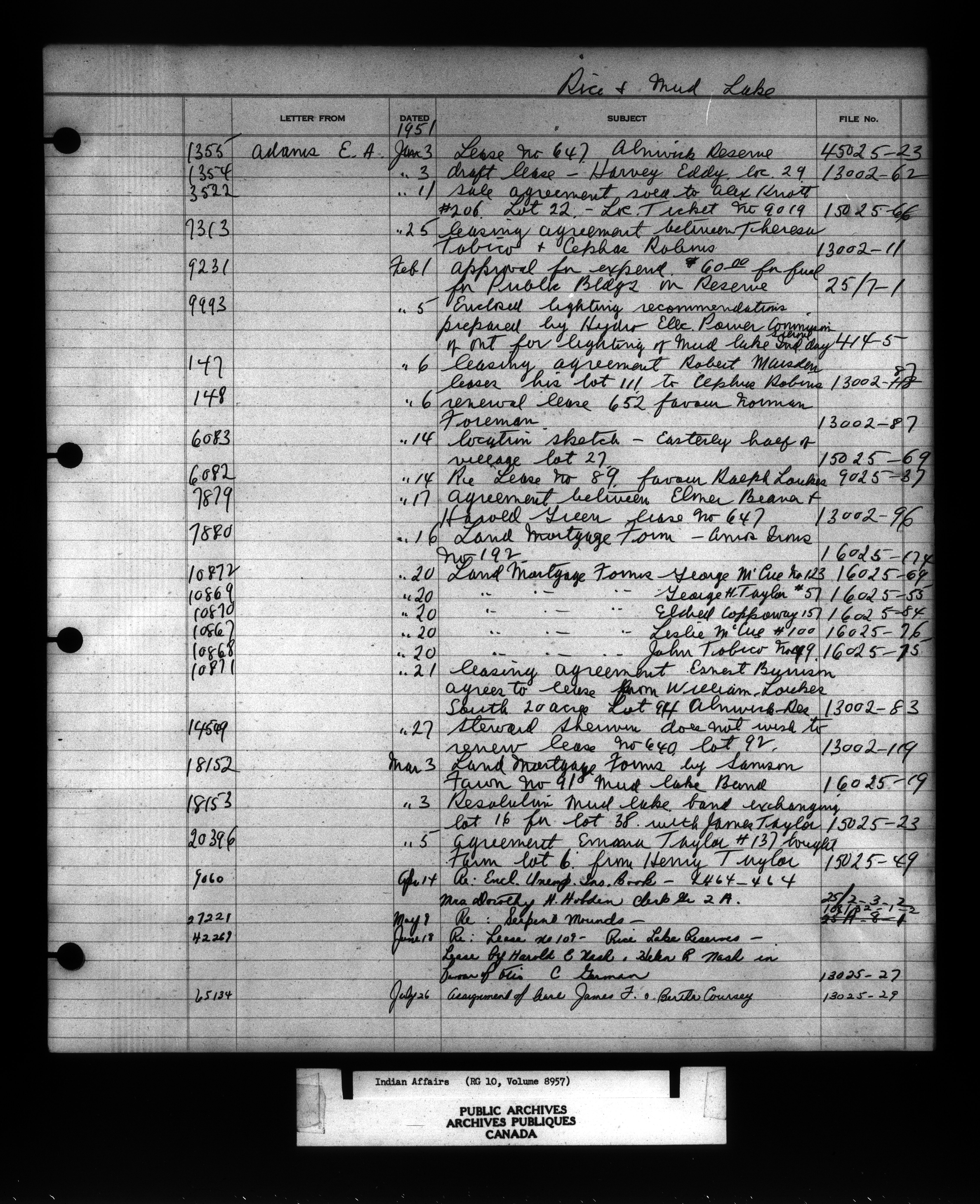 Department of Indian Affairs : Indexed Registers for Western Canada - 10968