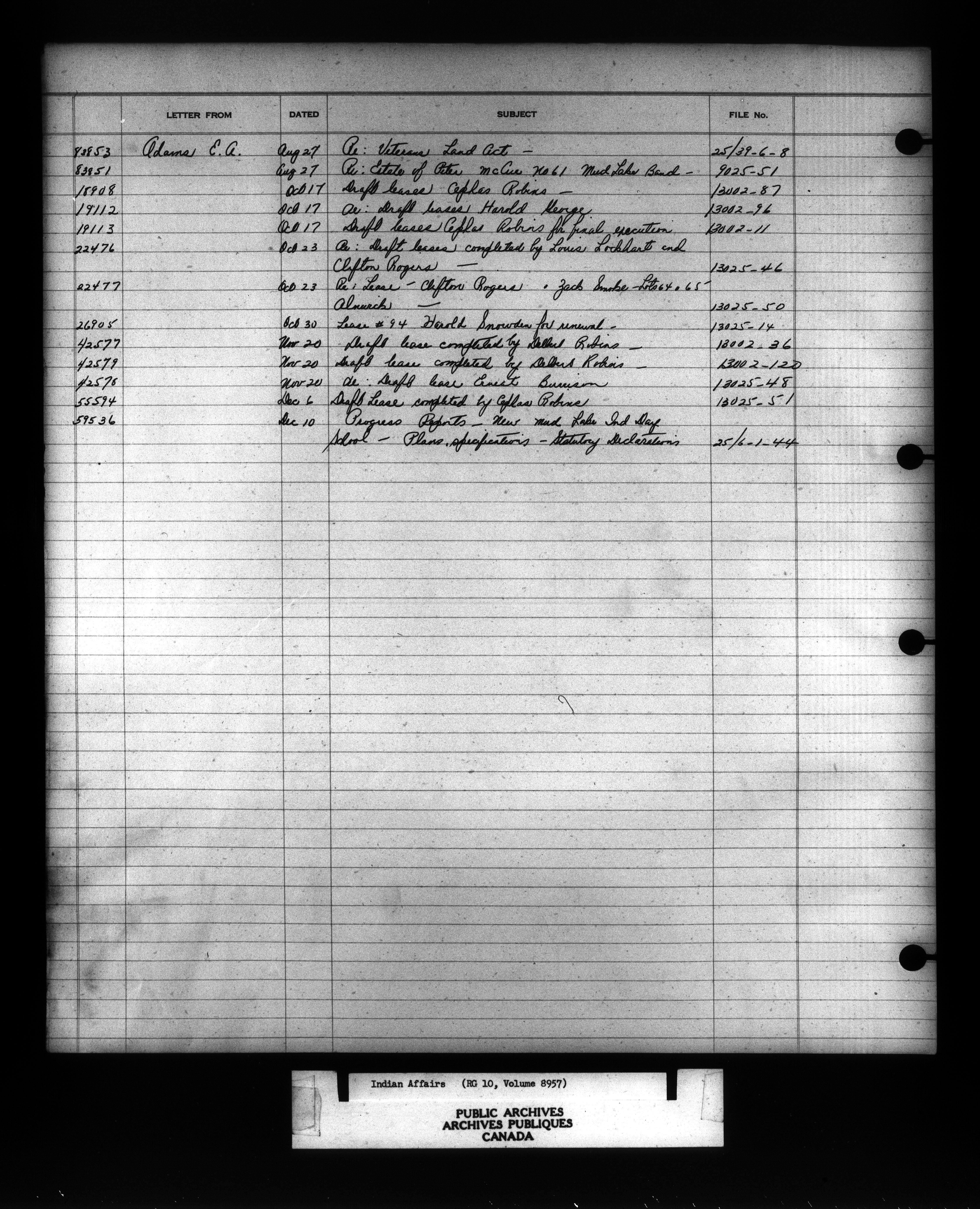 Department of Indian Affairs : Indexed Registers for Western Canada - 10968