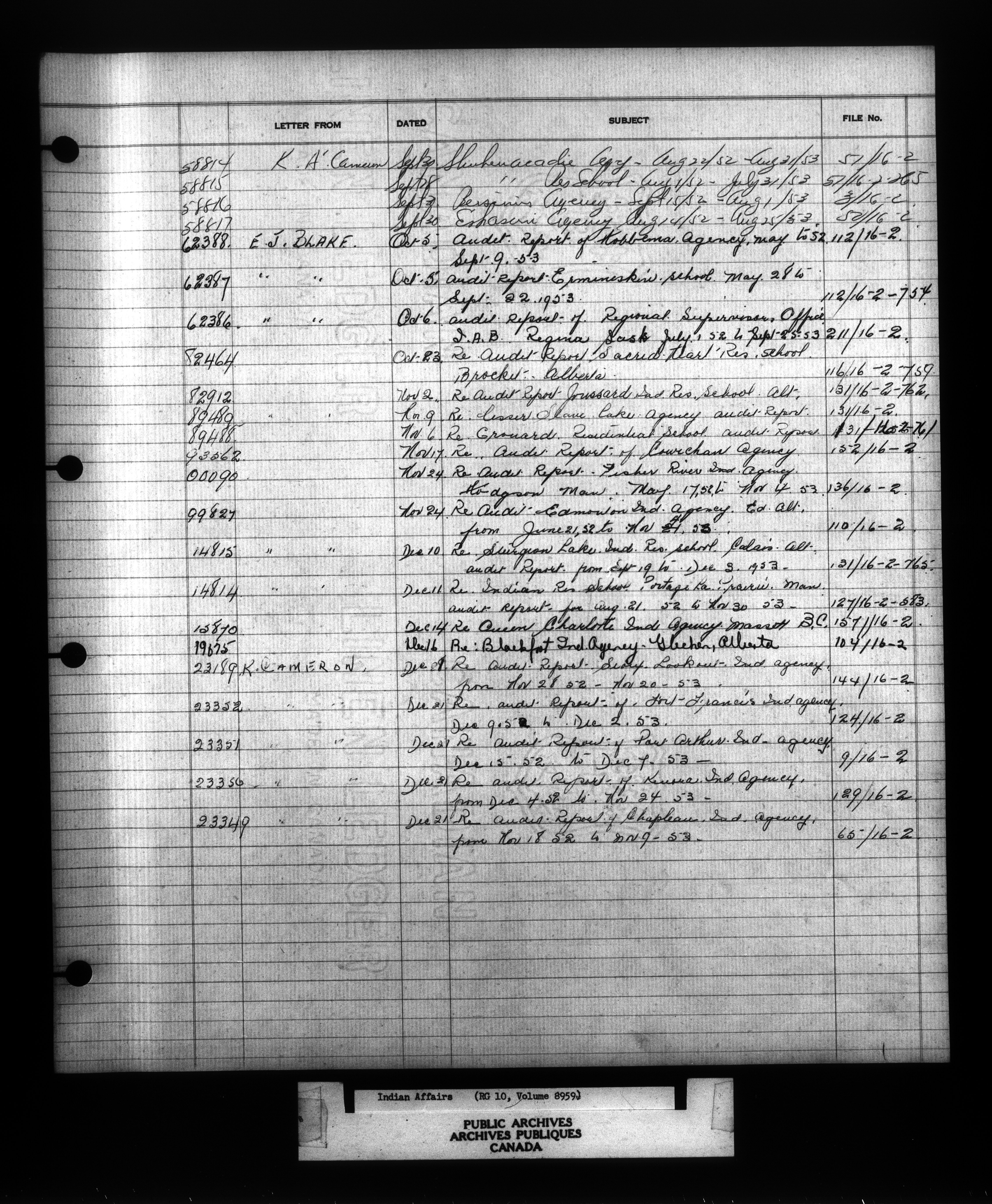 Department of Indian Affairs : Indexed Registers for Western Canada - 10969