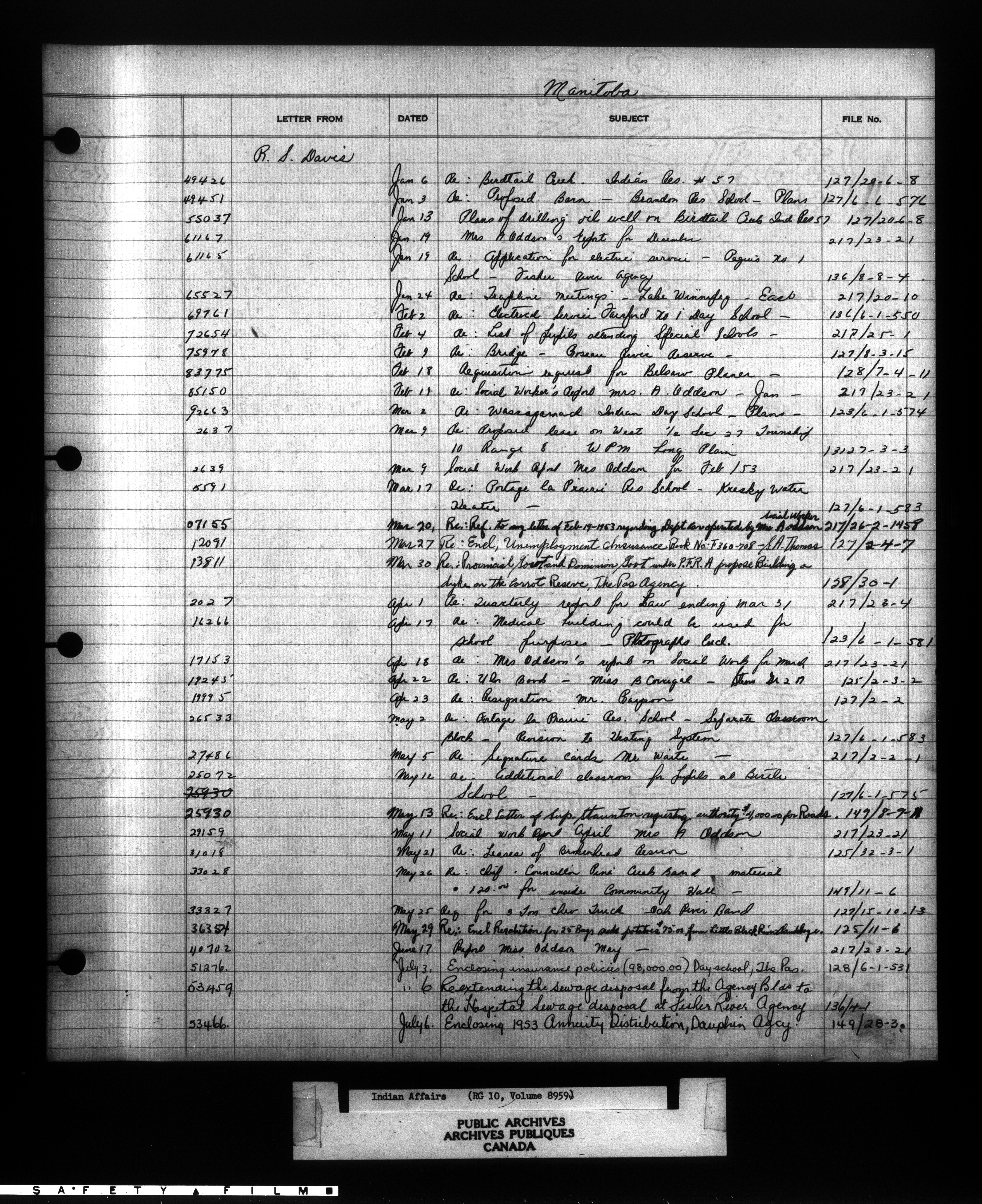 Department of Indian Affairs : Indexed Registers for Western Canada - 10969