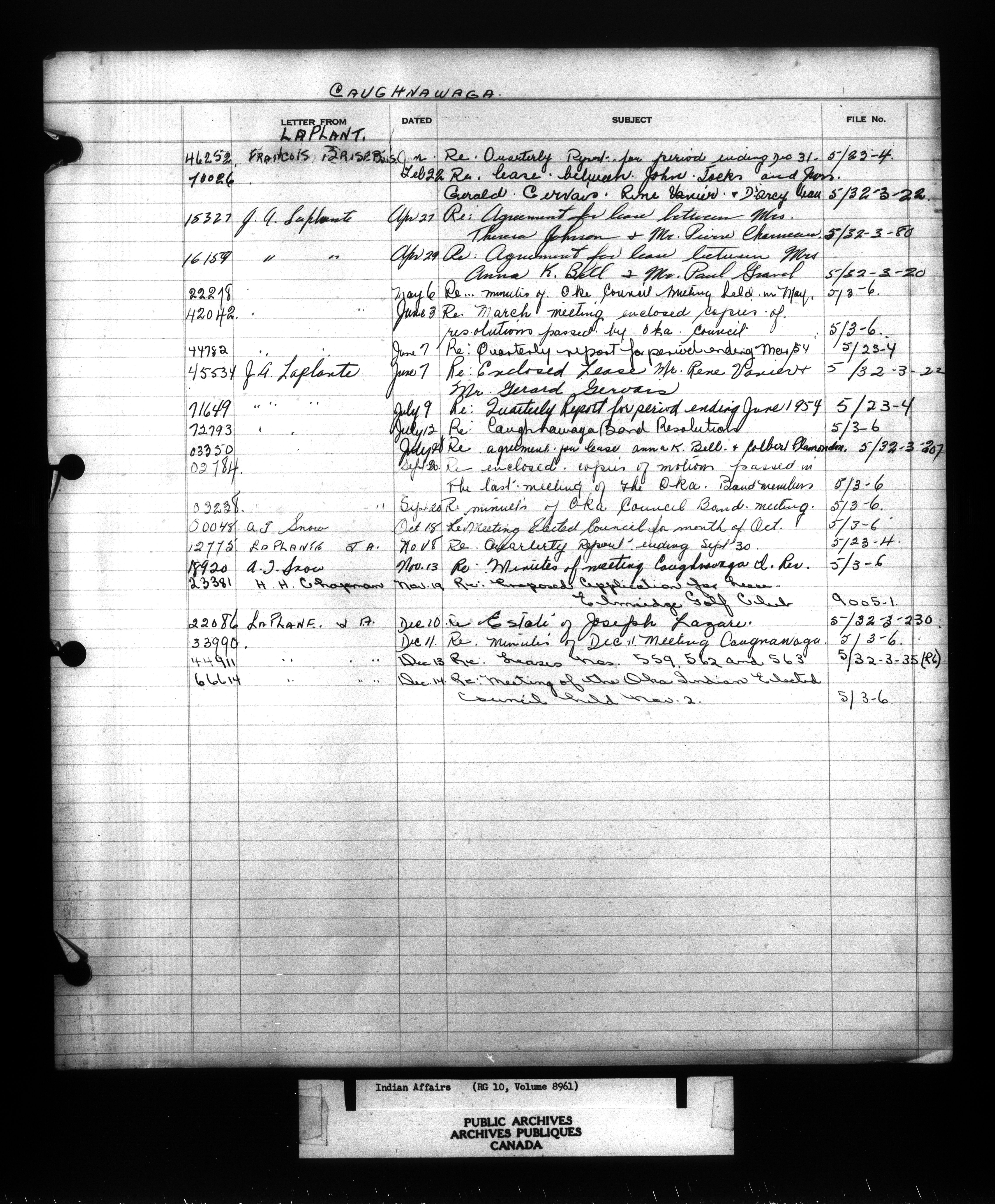 Department of Indian Affairs, Headquarters central registry system :registers, indices and indexed registers : C-10969
