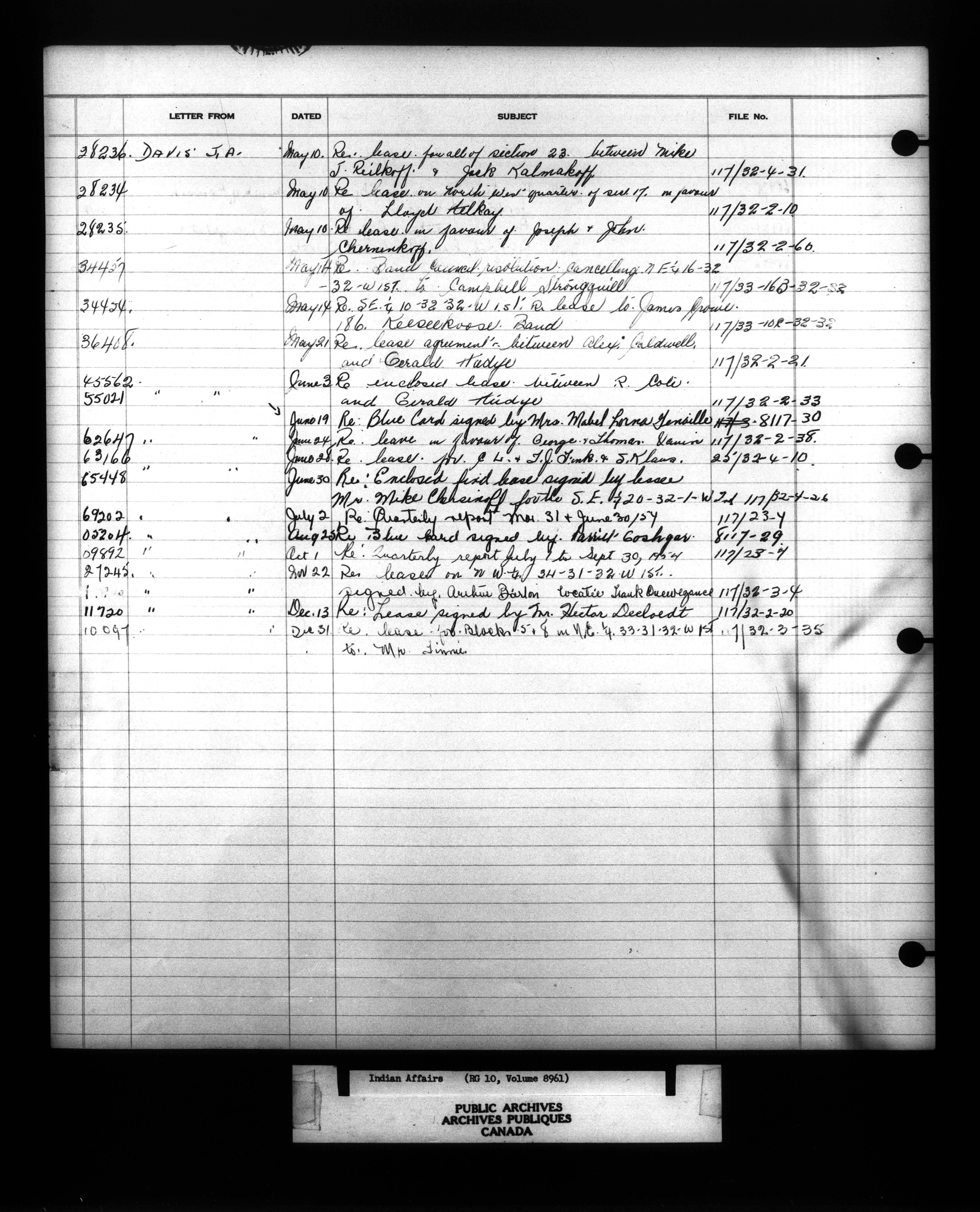 Department of Indian Affairs : Indexed Registers for Western Canada - 10970