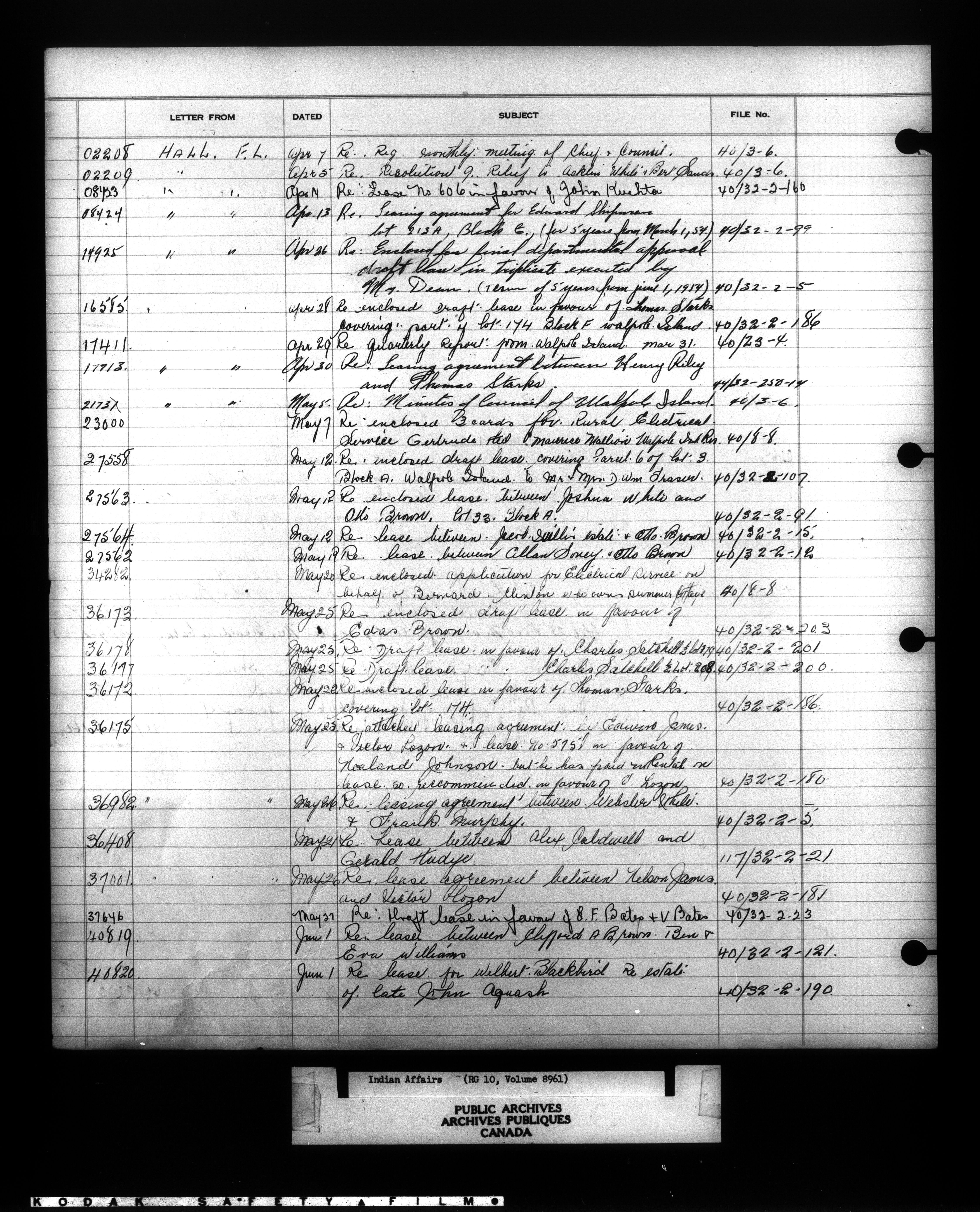 Department of Indian Affairs : Indexed Registers for Western Canada - 10970
