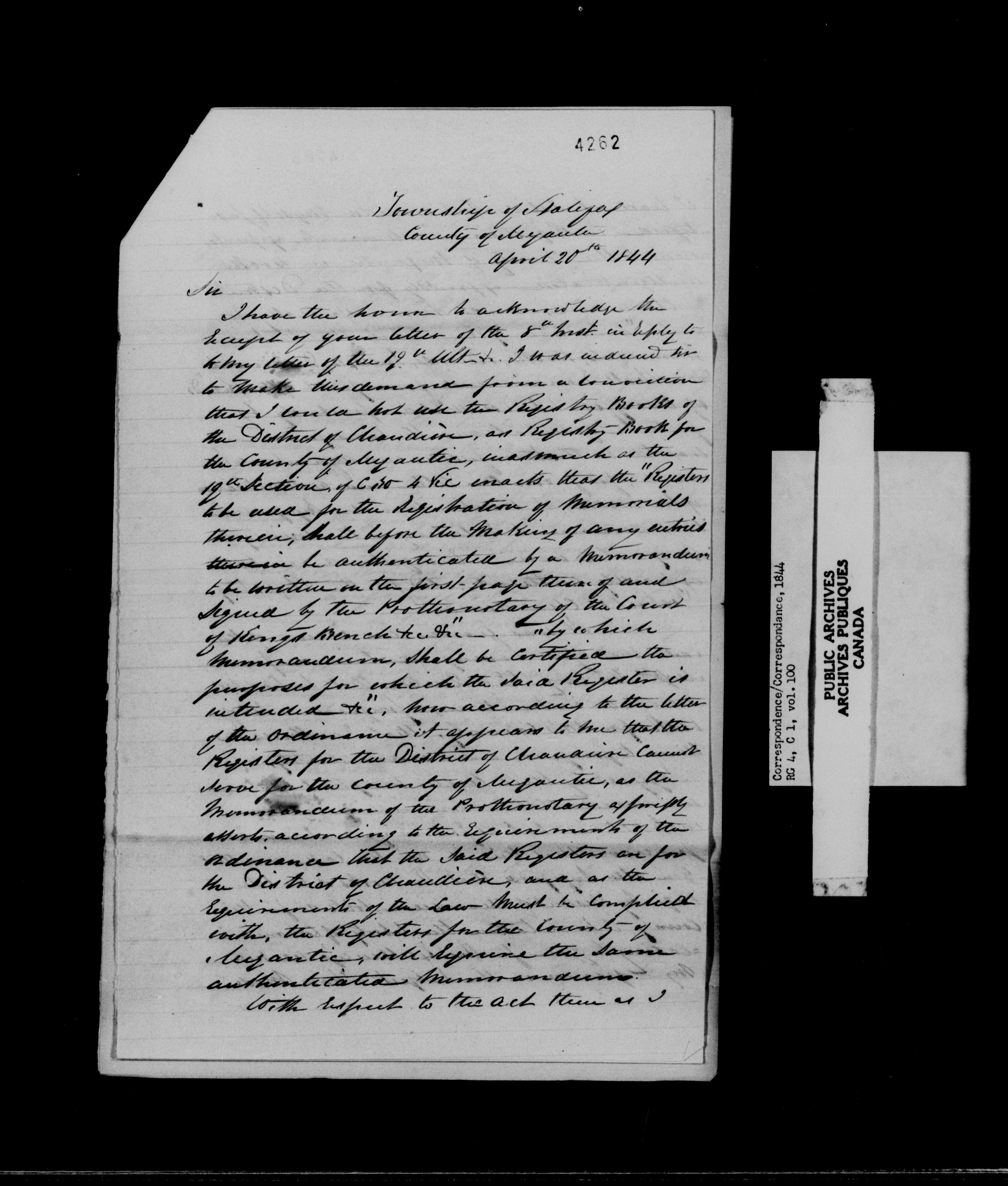 Provincial Secretary, Canada East : Numbered Correspondence Files, 1839-1867 - 10973